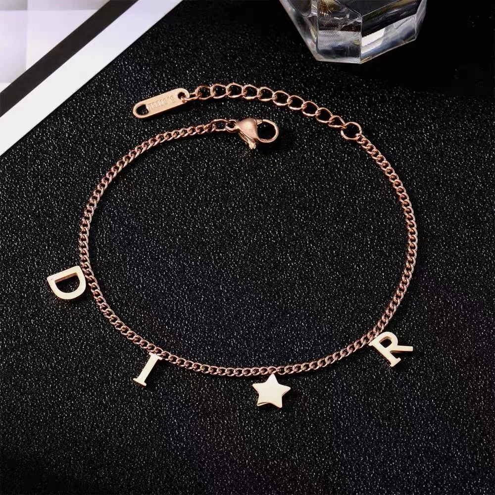Add a delicate touch of elegance to your jewelry collection with the Korea New Fashion Letter Star Pendant Bracelet. This simple yet stunning stainless steel bracelet features a charming star pendant and letter detailing, making it a versatile accessory for daily wear or special occasions. A perfect gift for women who appreciate timeless fashion and modern trends.