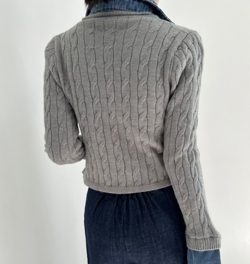 The addition of denim stitching elevates this sweater’s design, giving it a fresh, modern edge. The denim-like finish adds a touch of rugged sophistication, balancing the soft knit fabric. This blend of materials creates a visually interesting contrast, making the sweater both comfortable and stylish. Whether paired with jeans, skirts, or leggings, the denim stitching detail enhances the overall look.