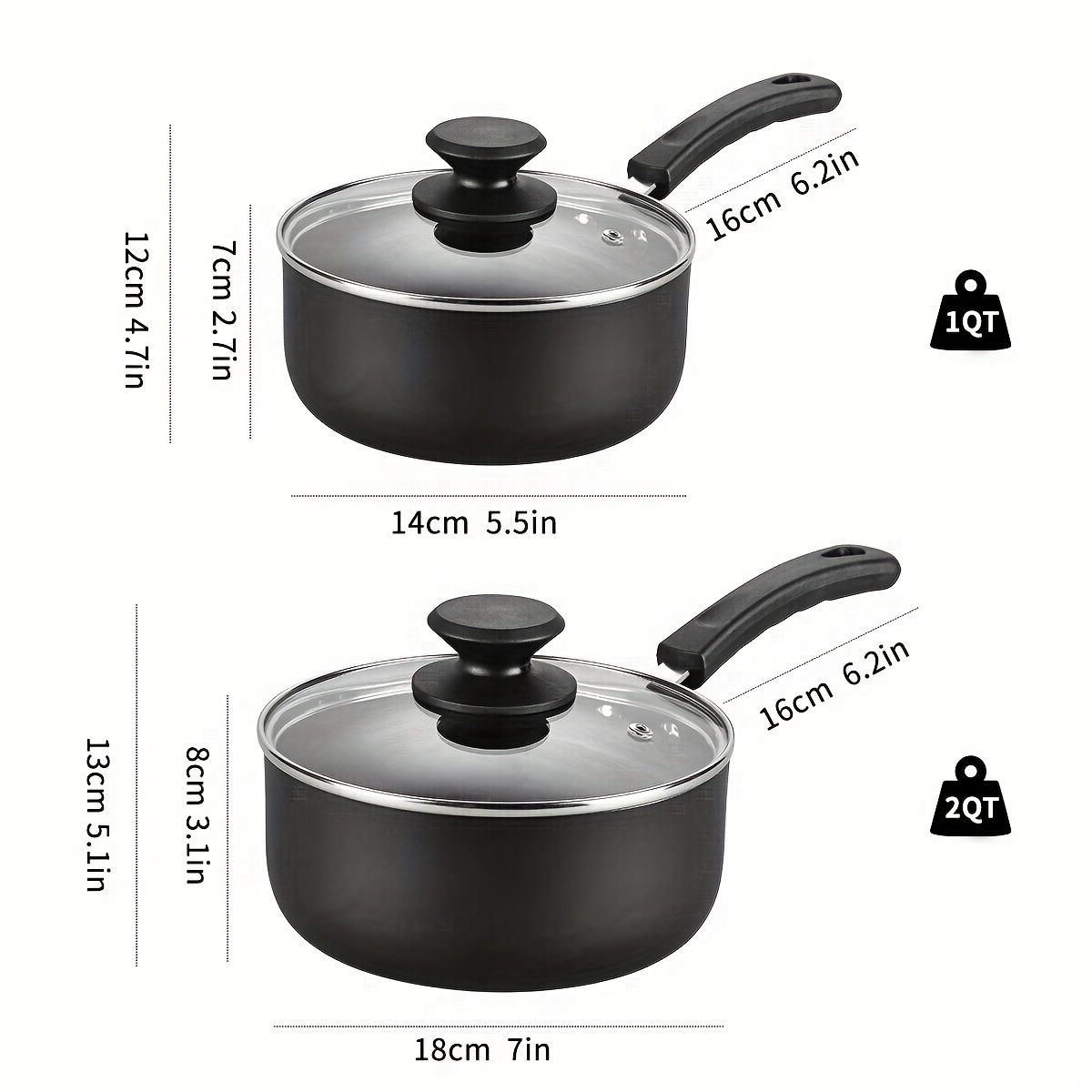 Description – KPXSIAION Nonstick Sauce Pan Set (1QT + 2QT)