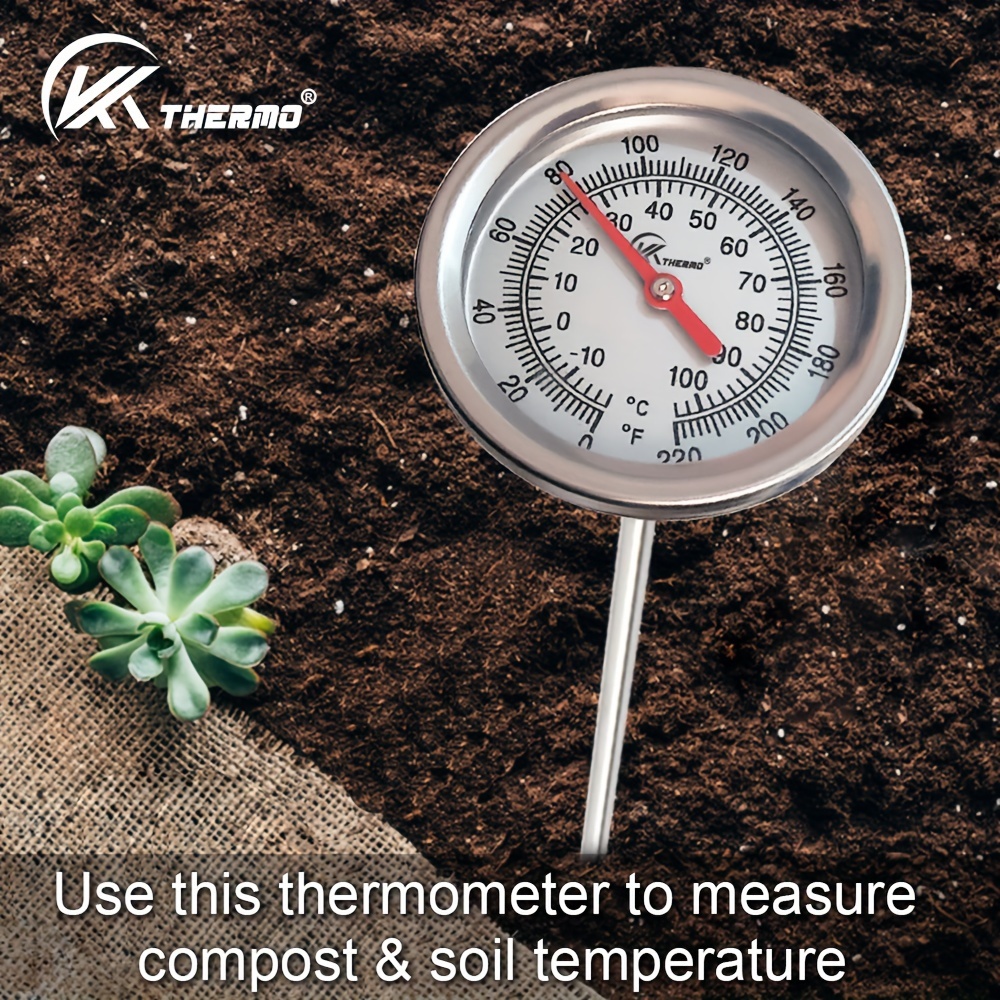 KT THERMO 50cm Stainless Steel Compost & Soil Thermometer – Long-Probe °C/°F Gauge for Gardening, Farming & Outdoor Planting