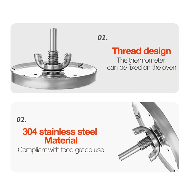 The KT THERMO Grill Thermometer features a 7.62cm oversized dial for easy visibility while grilling, even from a distance. Built with a non-contact design, it mounts directly onto grill lids or smoker doors, providing accurate ambient cooking temperatures without requiring direct contact with food.
