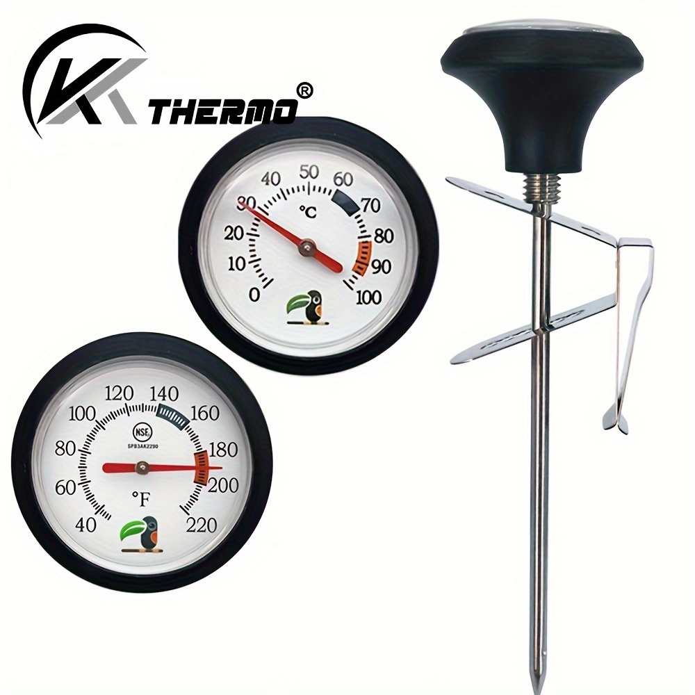 Designed with a clear analog dial, the thermometer provides instant readings suitable for pour-over coffee (90–96°C), milk steaming, and safe internal meat temperatures. Durable and battery-free, it works reliably in hot kitchens, cafés, camping setups, and barbecue environments.