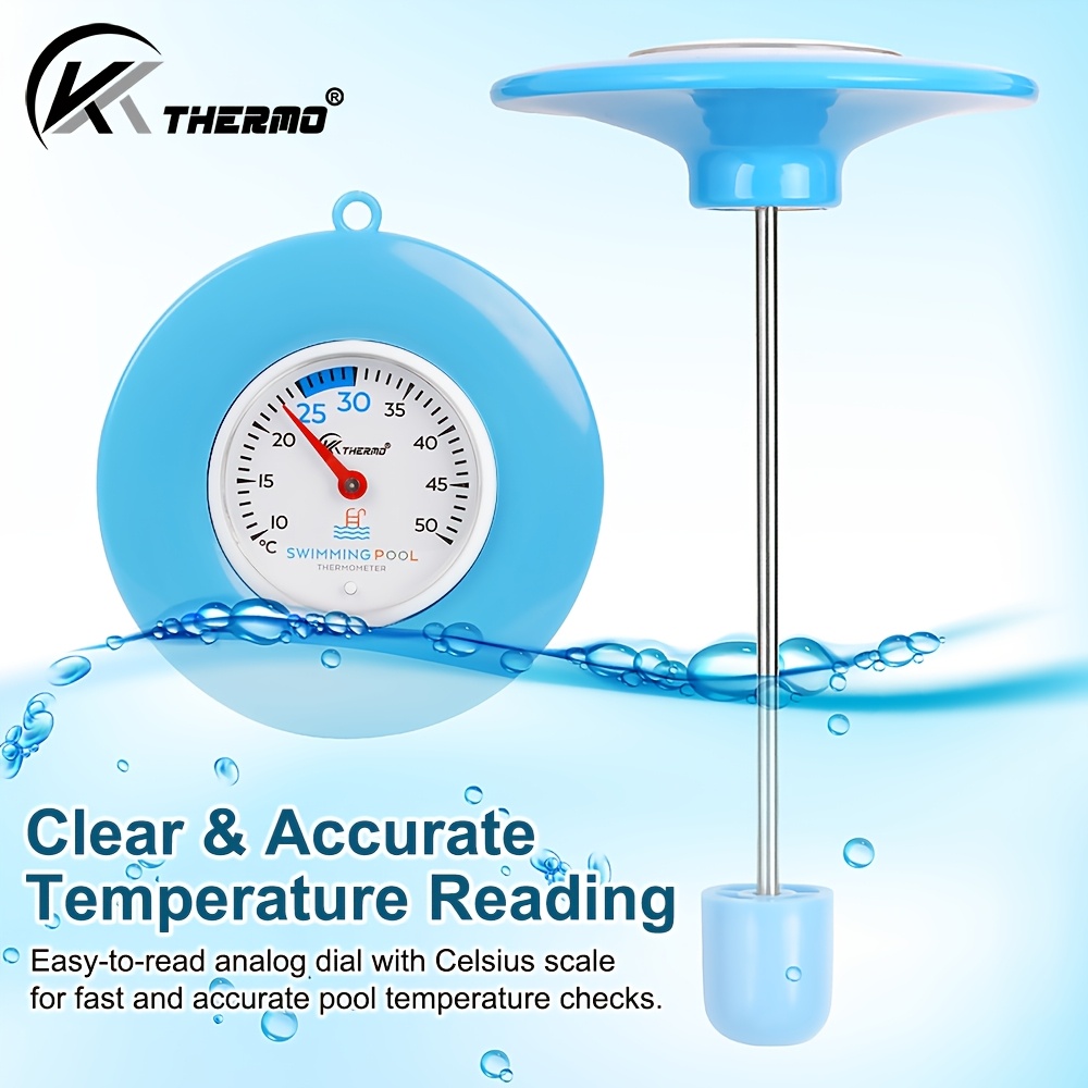 Quick & Clear Temperature Display Analog dial shows water temperature in Celsius with clear markings—no batteries or digital setup needed.Smooth Floating Design Compact and stable on water surface—stays upright for easy reading during use.Versatile for Pools & More Suitable for various settings including swimming pools, hot tubs, spas, and fish ponds.Celsius Scale Range: 10°C–50°C Covers common water temperatures to help you find the ideal comfort zone for any activity.Easy Placement with Rope & Suction Cup Includes tethering accessories to help keep the thermometer in place and easy to retrieve.