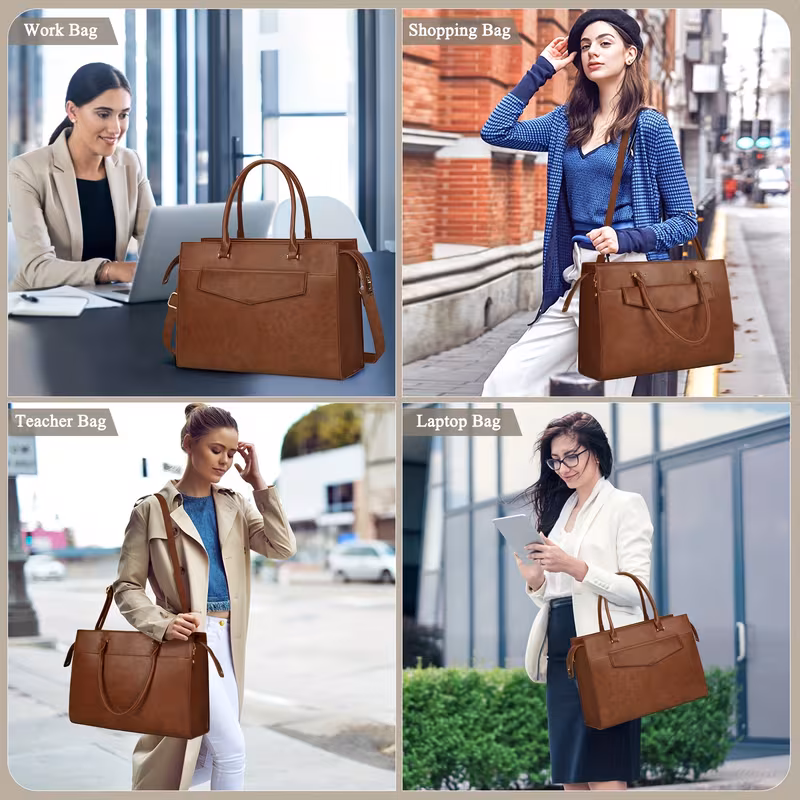 The KTMOUW Laptop Bag for Women set is the perfect blend of style, practicality, and durability. With a 39.62 cm laptop compartment, multiple pockets, and a clutch purse, this set offers plenty of room for your essentials while ensuring everything stays organized and secure. The retro brown PU leather material provides both elegance and functionality, making this set perfect for teachers, business professionals, and anyone looking for a stylish, reliable bag.