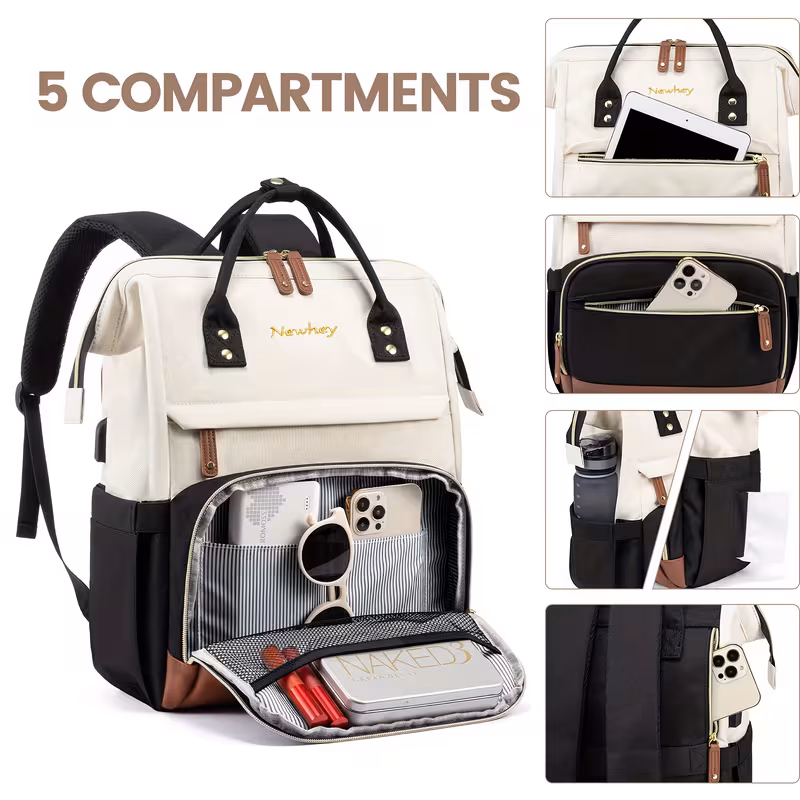 Stylish & Professional: The black & beige color scheme ensures this backpack is suitable for both casual and professional settings, maintaining a polished appearance.