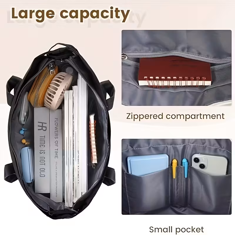 Practical and Organized: The zippered compartment keeps your essentials secure, while the spacious interior ensures you can carry everything you need for your day.