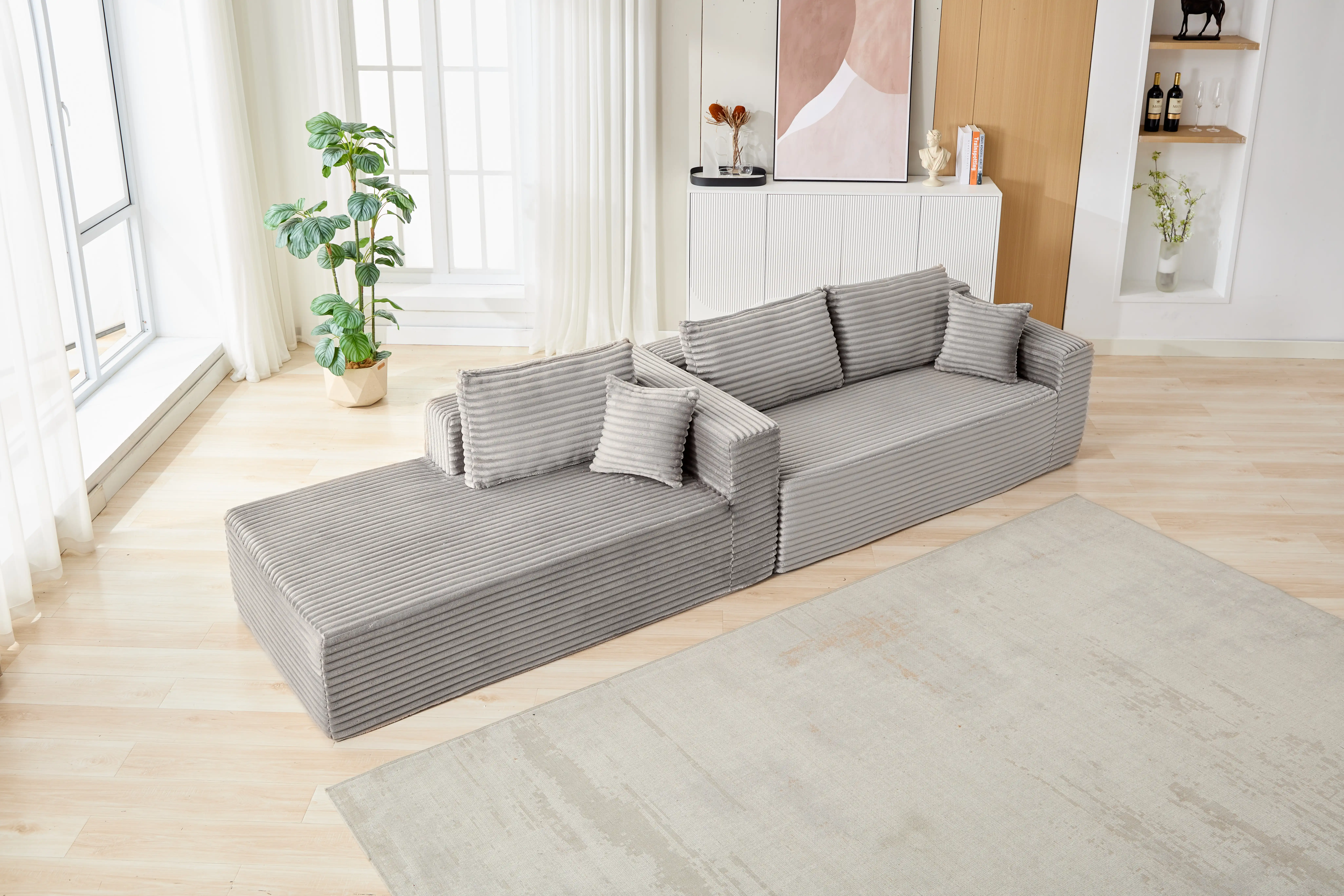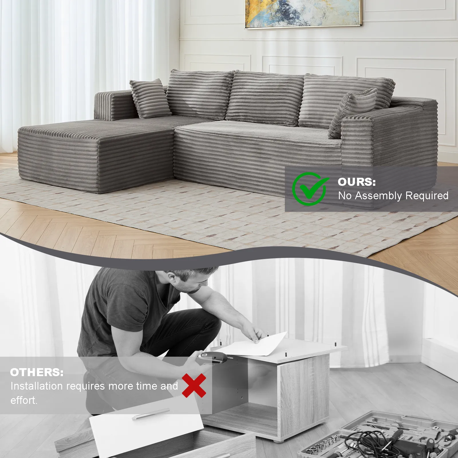Product Name:Compression Sectional Couch with Comfy Chaise, Boneless L Shape Sofa with Deep Seat, Minimalist Modular Couches Sleeper for Living Room Bedroom Apartment Lounge,corduroy,Grey