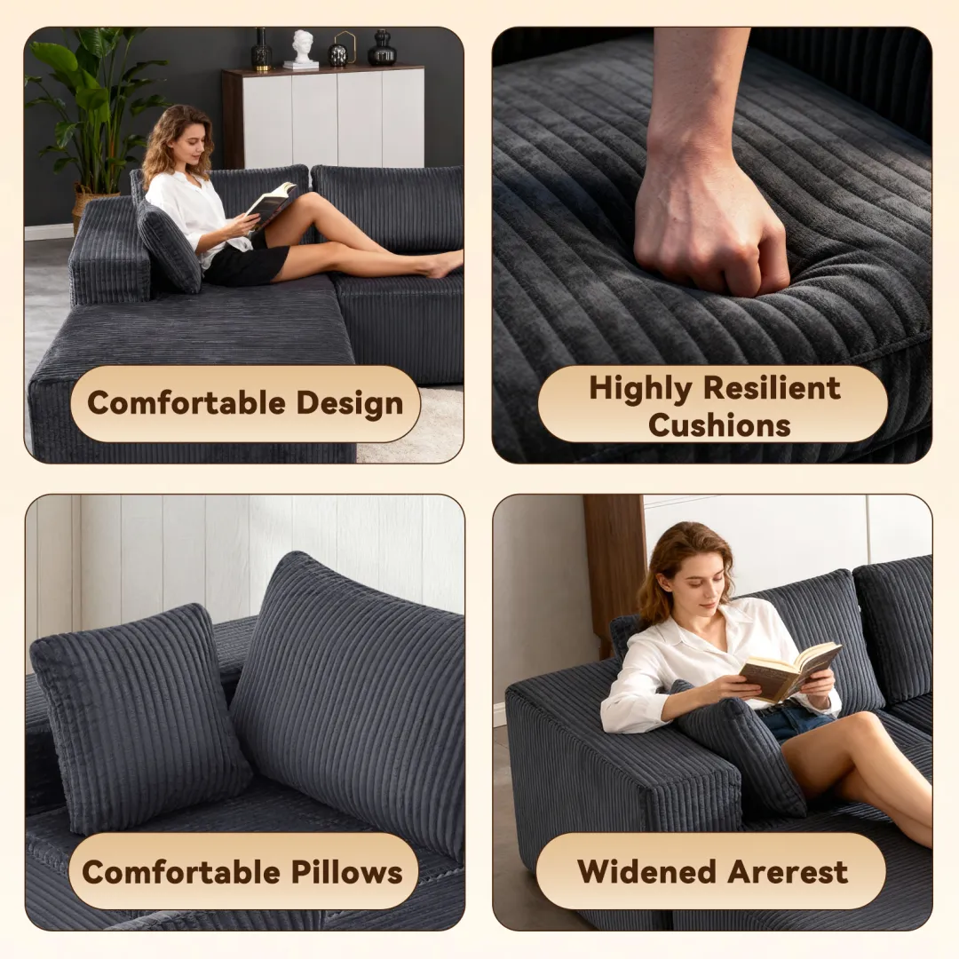 No installation required, ready to use upon disassembly: Boneless structure design. After unpacking, gently tap the sofa components and let it stand for 72 hours to regain its full shape. Say goodbye to the complex assembly process, saving you time and effort