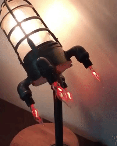Nuestra lámpara TARDIS no solo es una impresionante pieza central para tu hogar, sino también una maravilla de la artesanía. Diseñada para cautivar, su llama LED y sus bombillas dinámicas emulan el fuego realista de un cohete en su lanzamiento. Esta pieza aporta un toque retro-industrial a cualquier espacio.