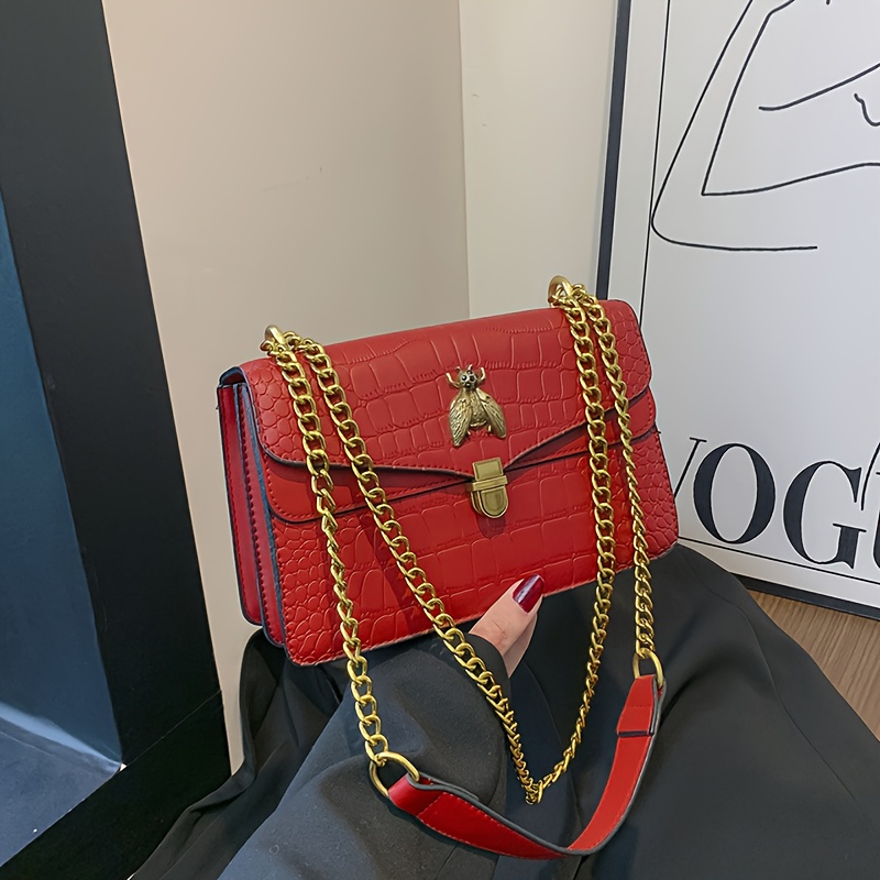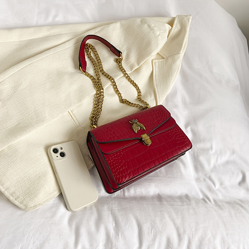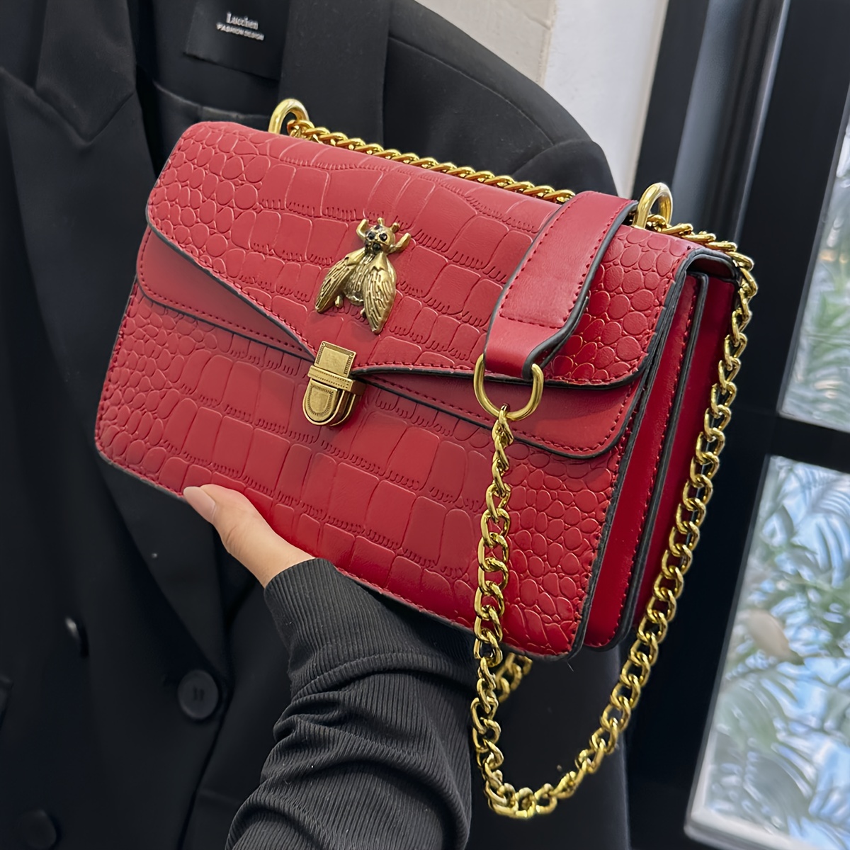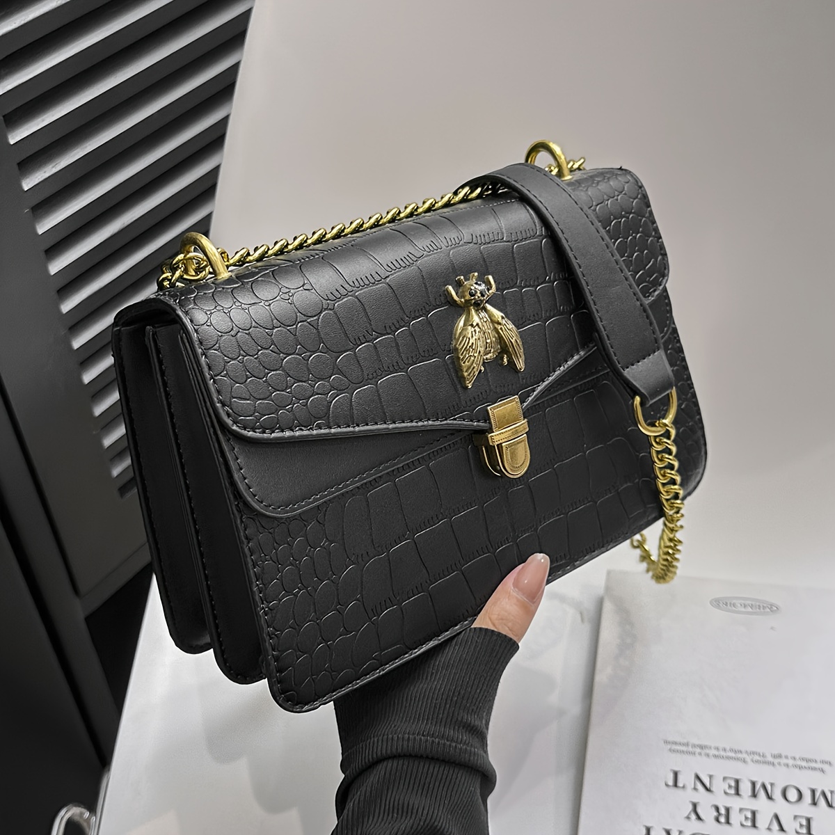 Alligator Texture Design: The bag features a premium alligator texture that adds a luxurious and sophisticated touch to the design, making it stand out as a high-end accessory.