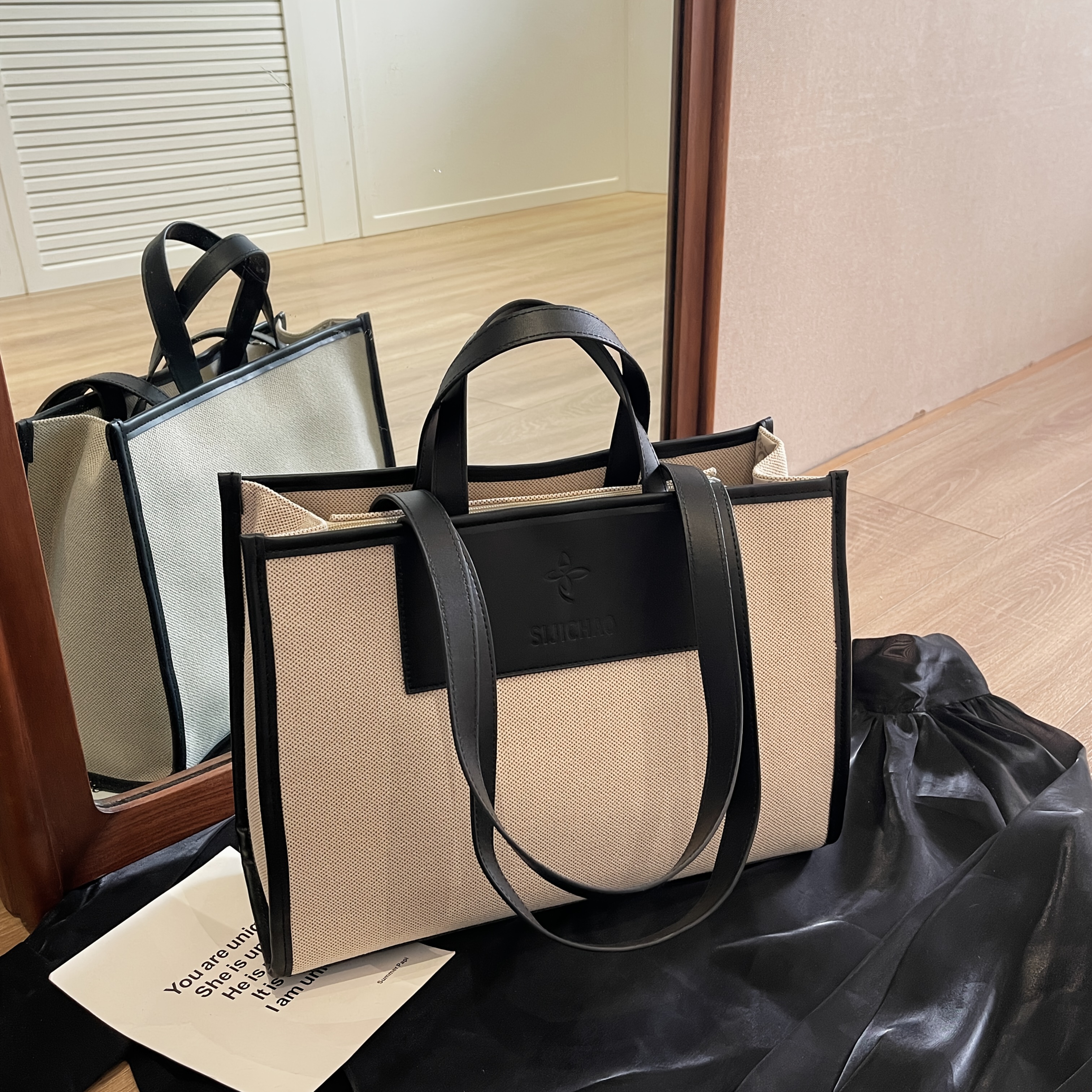 The large-capacity interior provides enough space to store all your essentials and more, from your phone and wallet to makeup, books, and even a light jacket or sweater. The contrasting elements add a modern touch to the bag's vintage design, making it a versatile accessory that complements both casual and more refined outfits. Whether for work, shopping, or travel, this tote bag meets your daily needs while keeping you looking stylish and organized.