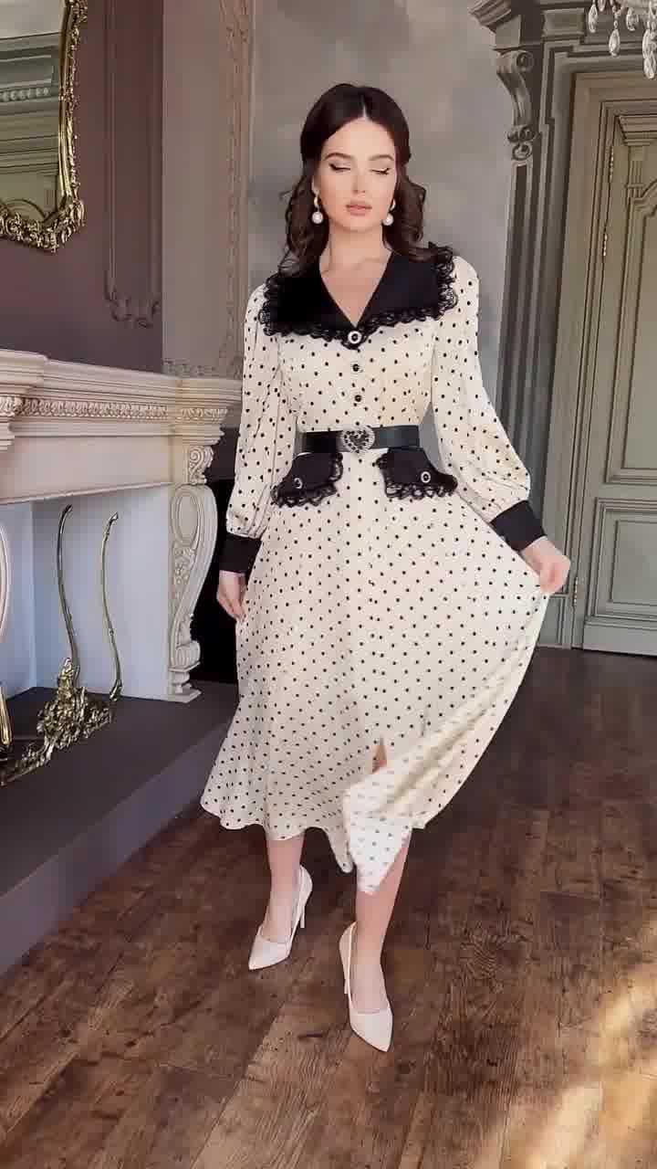 Ideal for summer outings or special occasions, this dress also makes a thoughtful gift for birthdays, anniversaries, or holidays. With its combination of playful prints and elegant details, the Lace Doll Collar Polka Dot Print Dress is a must-have addition to any wardrobe, allowing you to express your unique personality through fashion.