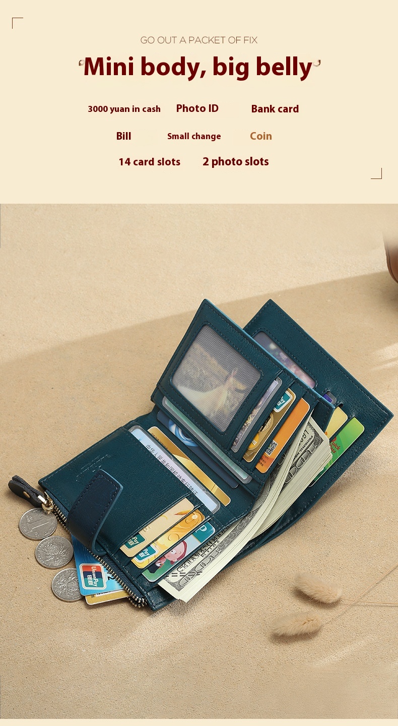 Ladies' RFID Anti-theft Swiping Zipper Hasp Multifunctional Coin Purse