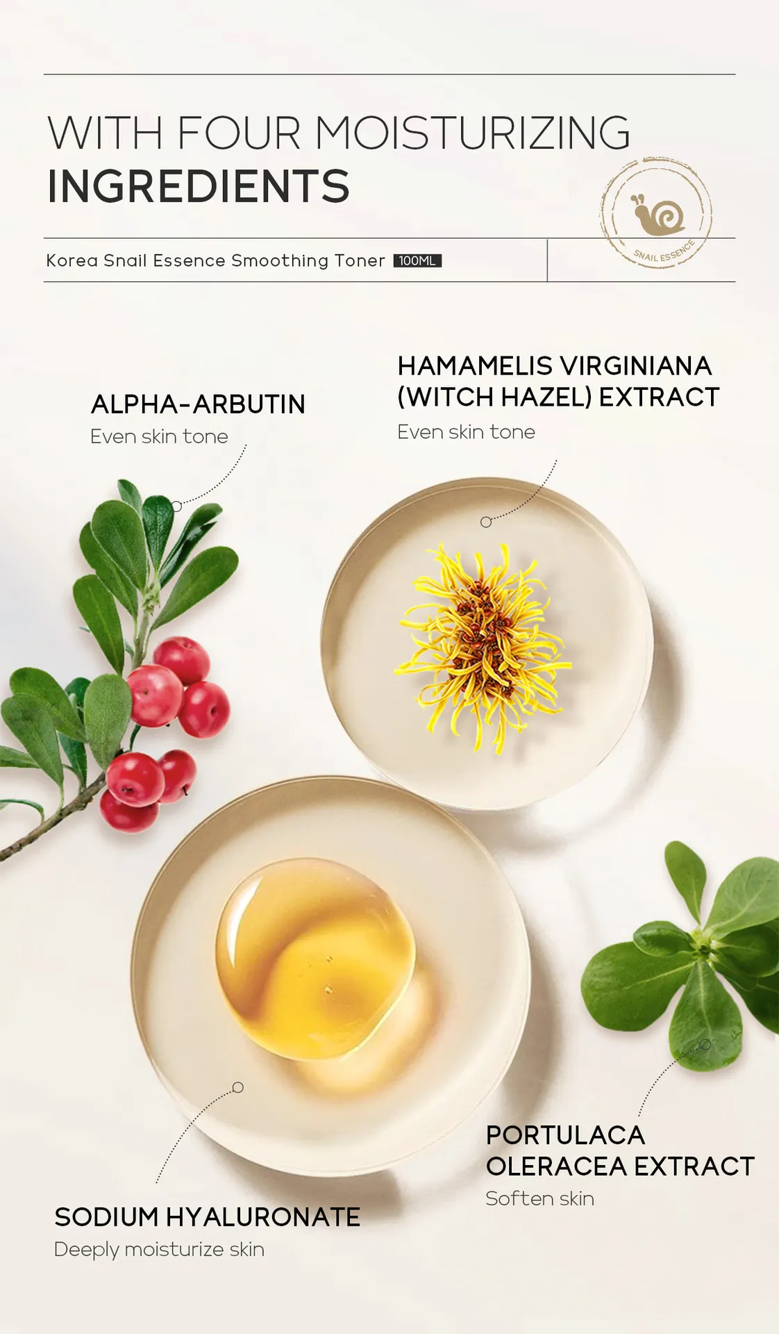 Snail Mucin Extract: Known for its skin-healing and regenerative properties, snail mucin helps repair and regenerate skin