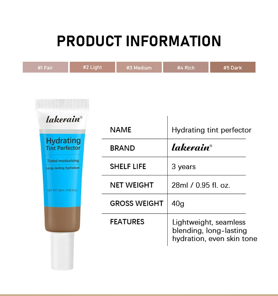 hydrating tint perfector, tinted moisturiser, lightweight foundation alternative, hydrating face tint, natural makeup tint, daily moisturising tint, long-lasting hydration skincare, Lakerain face tint
