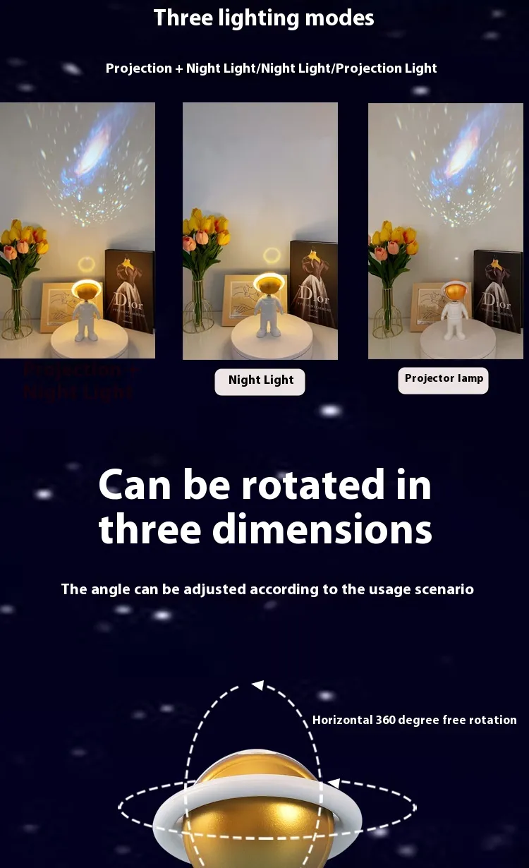 El proyector puede girar 360 grados, proporcionando un espectáculo de luces dinámico e inmersivo que cubre toda la habitación. La suave rotación contribuye a un ambiente relajante, haciéndolo perfecto para las rutinas de dormir o para crear un ambiente tranquilo.