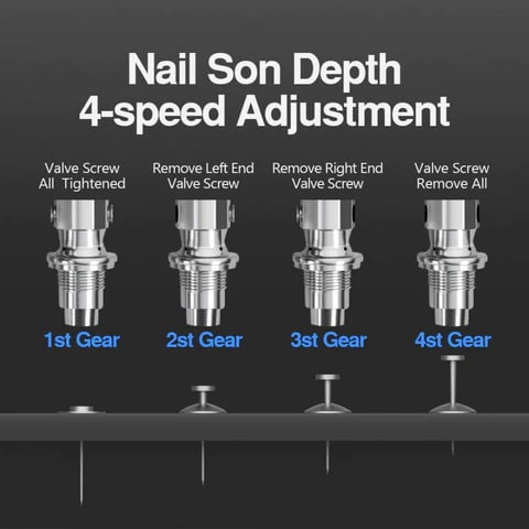Control de profundidad ajustable: Permite a los usuarios configurar la profundidad de penetración del clavo, lo que garantiza resultados óptimos en diferentes materiales y aplicaciones.