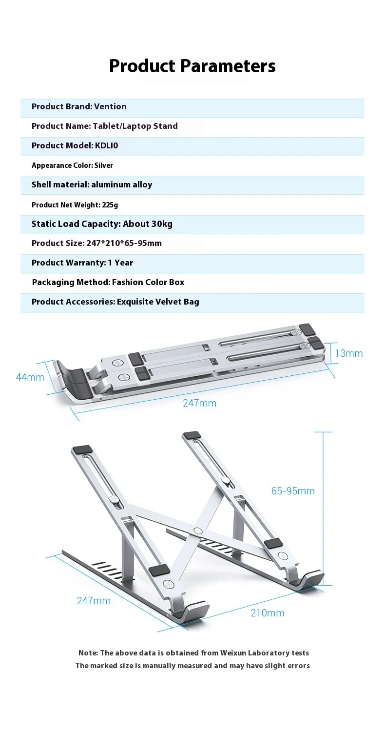 Lightweight yet robust, the stand is easy to move and set up on any desktop. Its non-slip pads keep your laptop securely in place, while the foldable design allows for convenient storage or transport. Perfect for office, home, or study use.