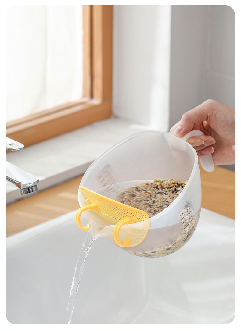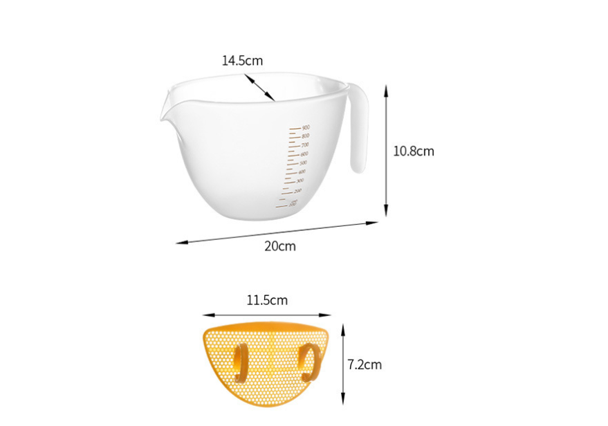 Functions as a mixing bowl, measuring cup, and egg filter, providing versatility for a wide range of kitchen tasks.