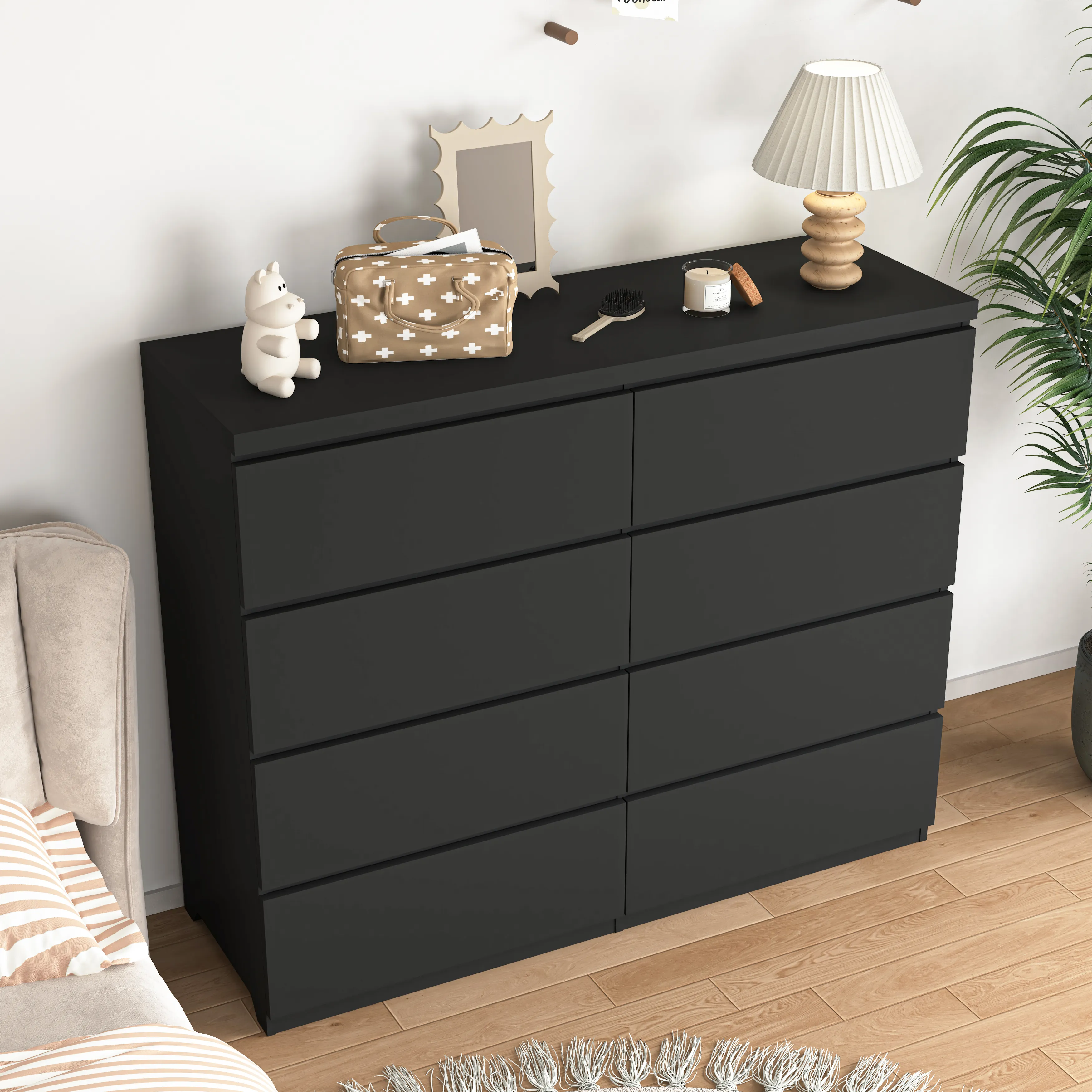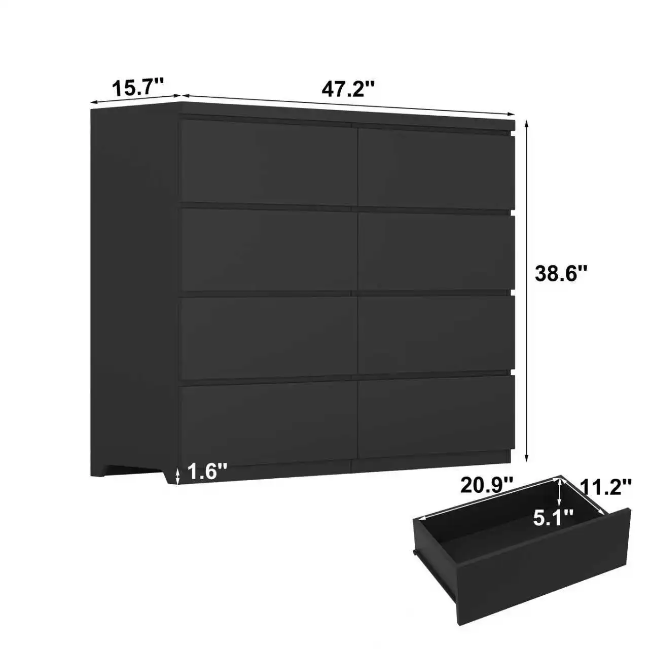 - 【Handy design】 Dresser with 8 Drawers get painstaking treatment for smooth gliding and easy use. Clothing and socks can be stack to conserve space.