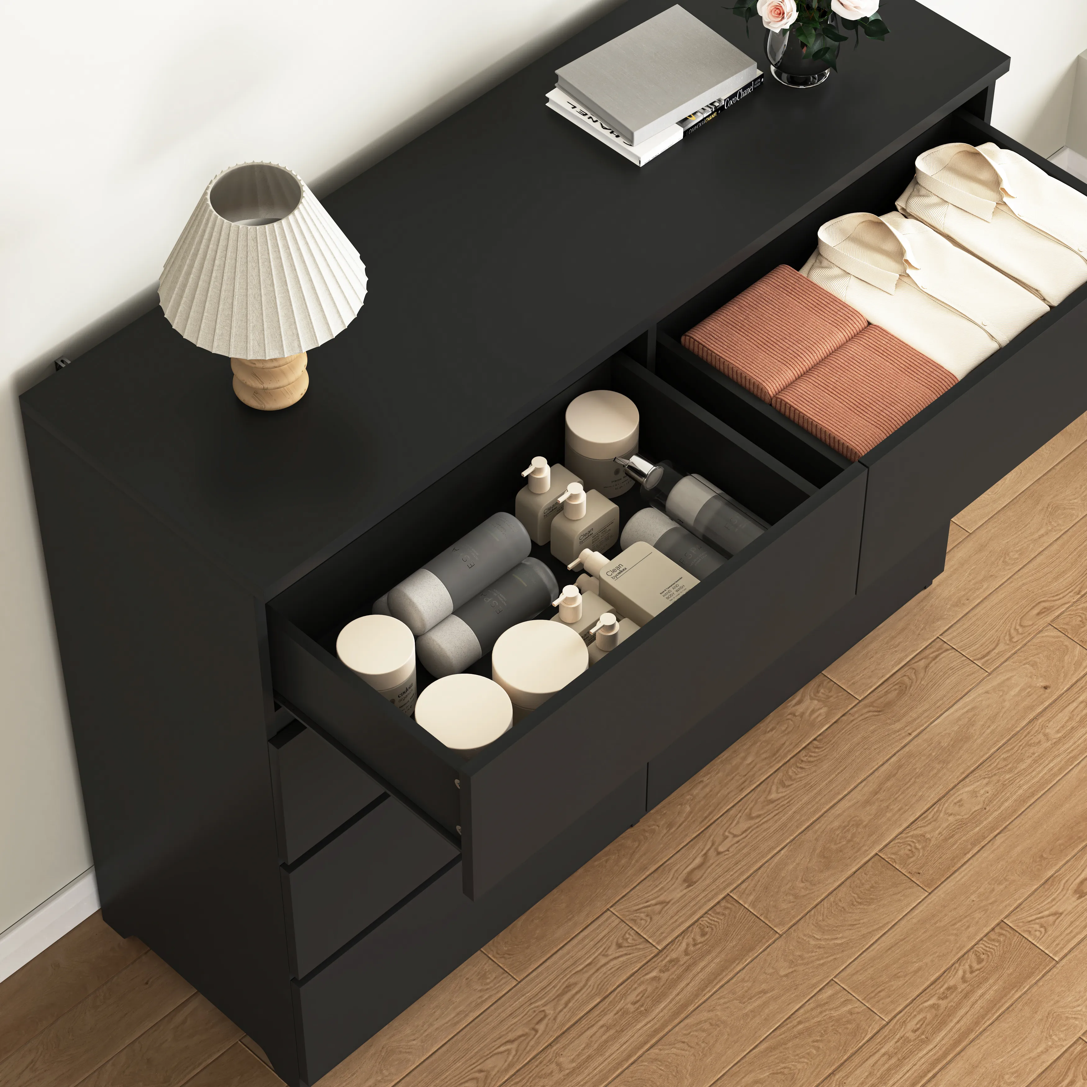The Large Dresser stands out for its combination of ample storage, durability, and modern design. Offering plenty of space to store clothes and accessories, it helps you keep your bedroom tidy while adding an elegant touch to your space. Its quality craftsmanship ensures long-term durability, making it a smart investment for your home.