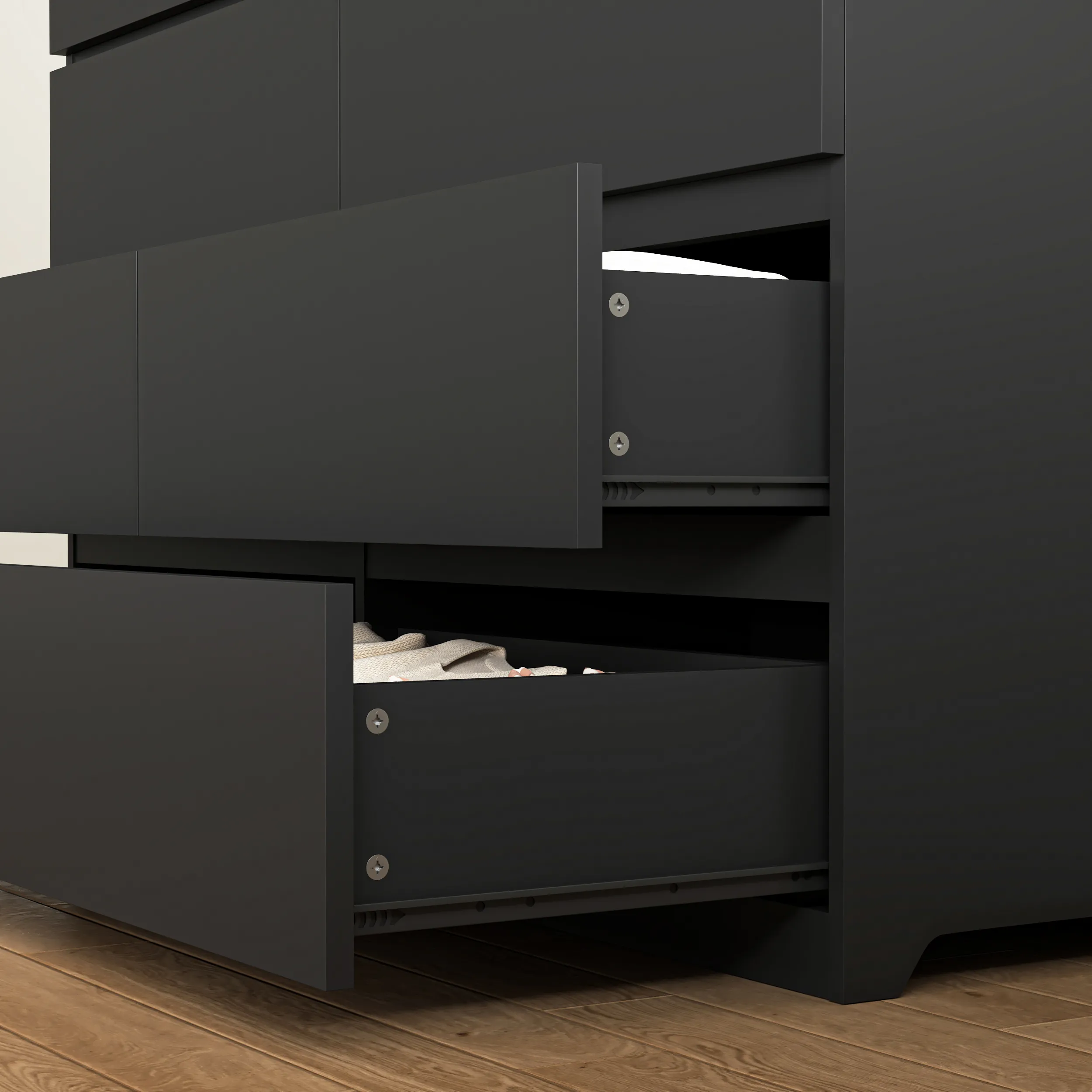 Ample Storage Space: With multiple drawers of varying sizes, this dresser offers plenty of storage for clothes, linens, and other bedroom essentials.
