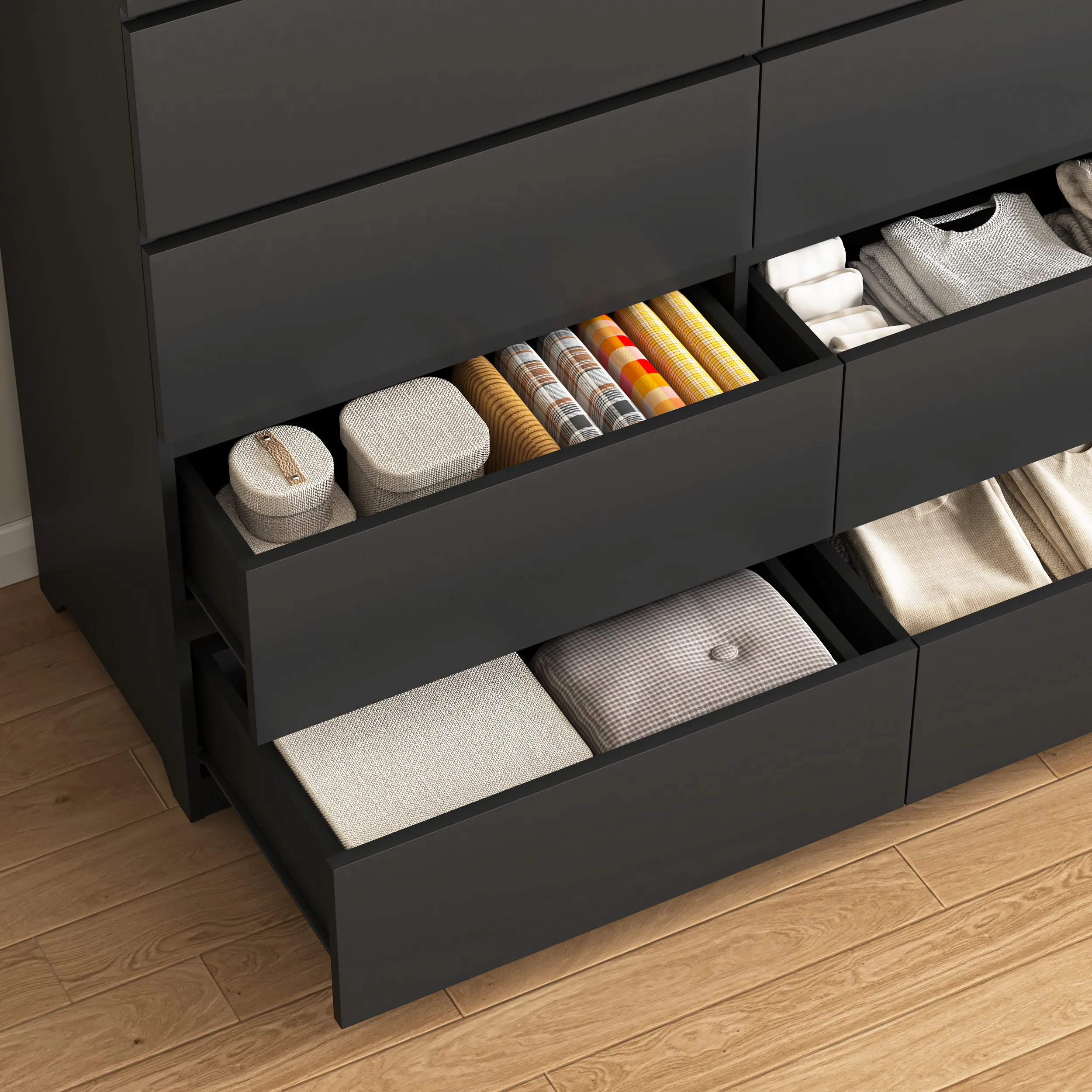 Easy to Organize: The large drawers allow for easy organization, keeping your space neat and tidy while providing quick access to your belongings.