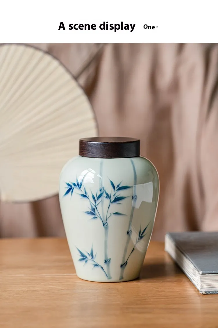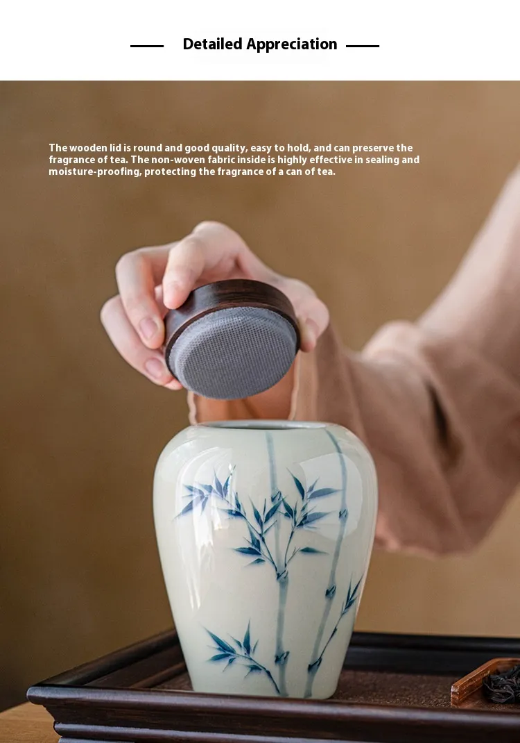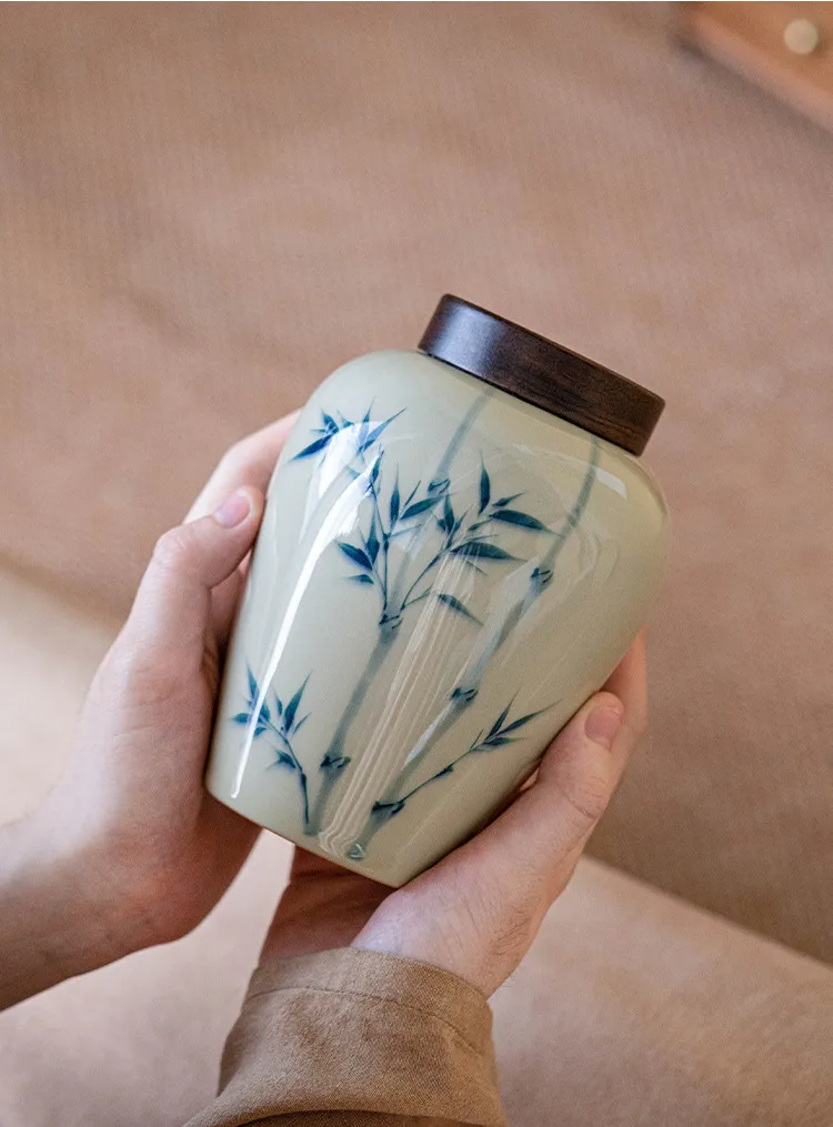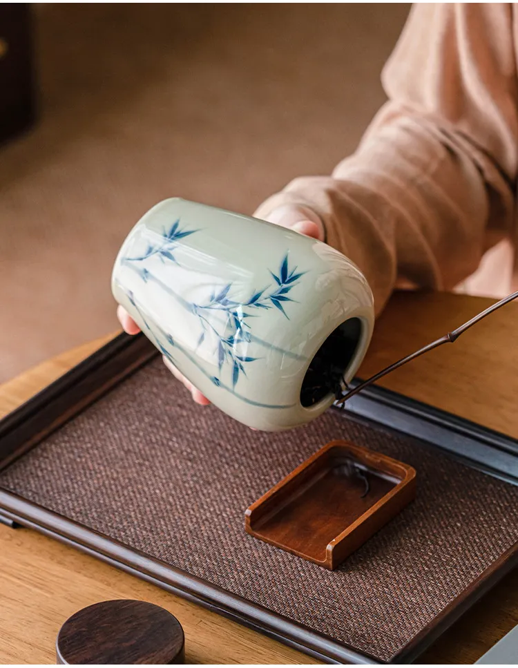 Color: grass and wood gray large tea caddy-bamboo