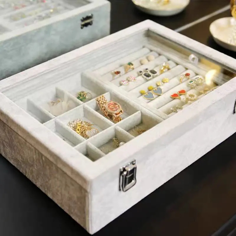 Name: Large gray double-layer jewelry box