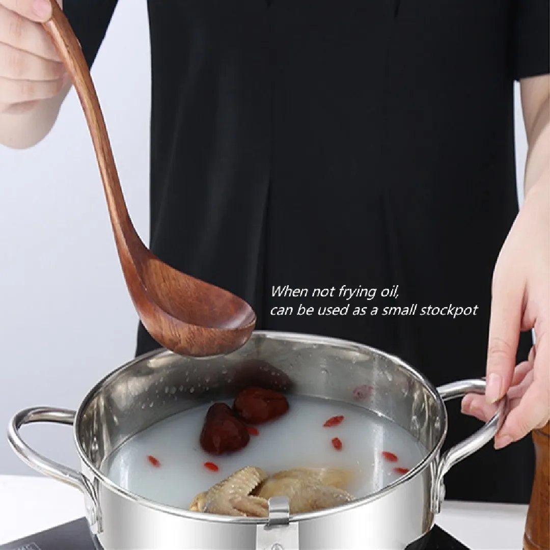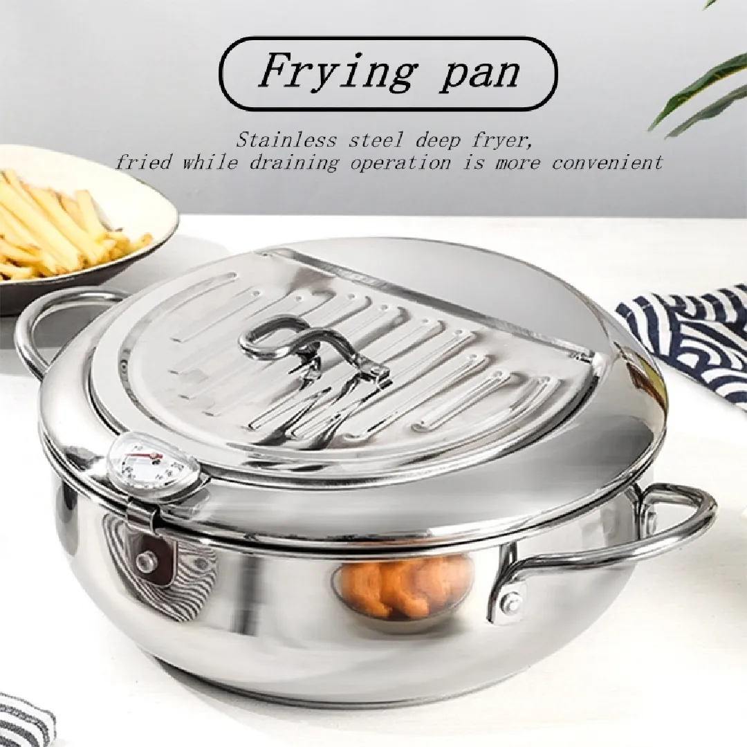 Stainless Steel Deep Fryer Pot,1 Count Frying Chicken Pot with Temperature Control & Lid,Kitchen Accessories,Japanese Style Tempura Fryer Pan for Home Kitchen,Kitchen Gadgets