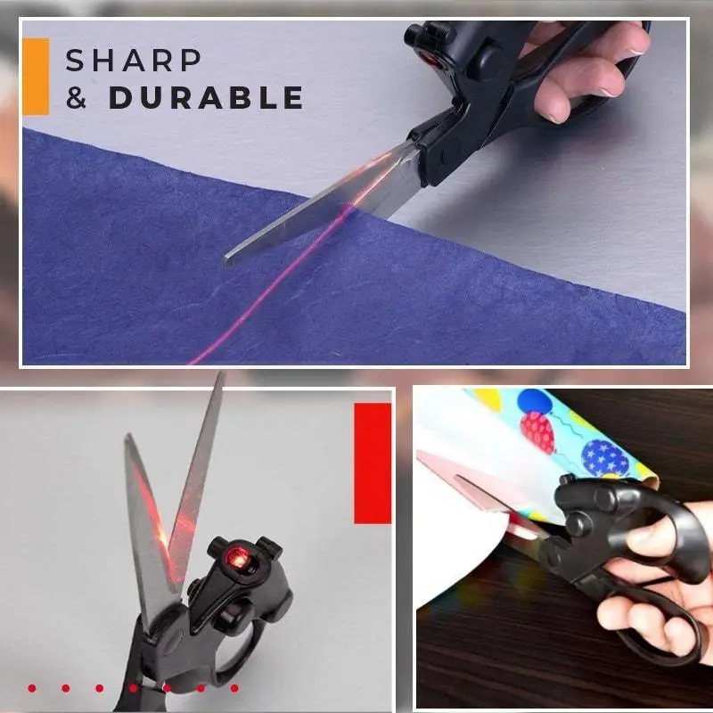 Laser Guided Scissors are precision cutting scissors equipped with a built-in laser line that shows exactly where the cut will go before the blades close. This visual guide allows users to follow straight lines confidently without rulers, pencils, or repeated adjustments.