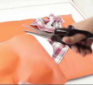 - Lay your material on a flat work surface and rest bottom blade of scissors on the surface;