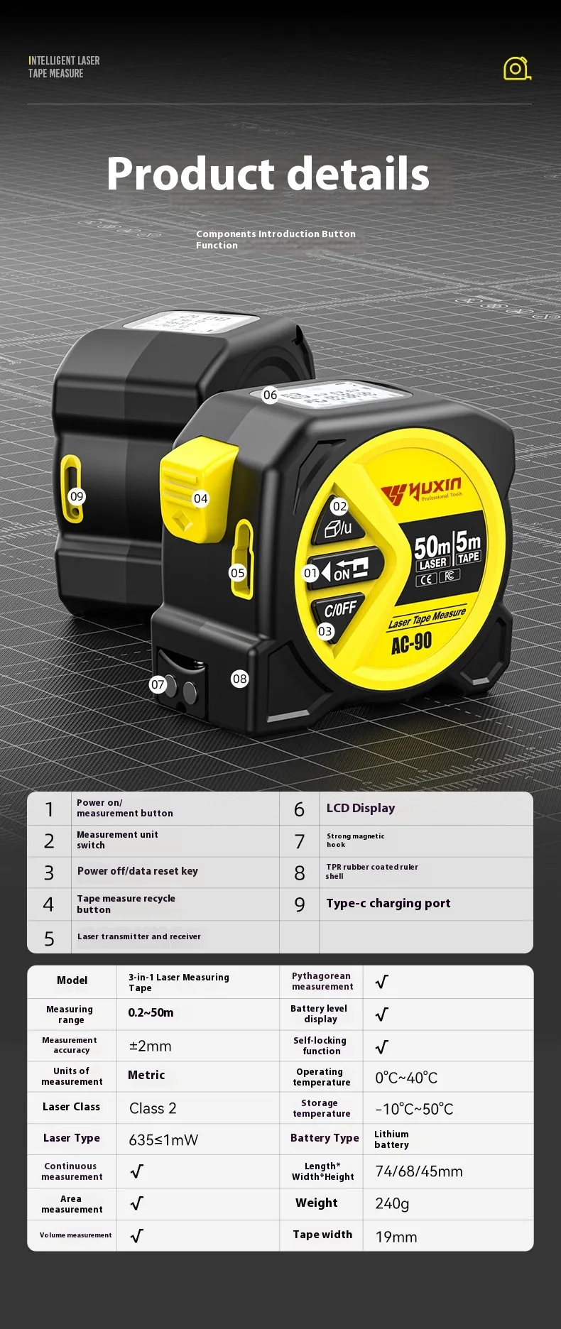 In conclusion, a laser tape measure is a must-have tool for anyone in need of accurate, quick, and efficient measurements. Whether you're measuring a room, calculating the area of a space, or determining the volume of an object, this tool offers unparalleled precision and convenience. With multiple functions, easy-to-read digital displays, and durable construction, laser tape measures provide everything you need for accurate measurement tasks, both in professional and personal projects.