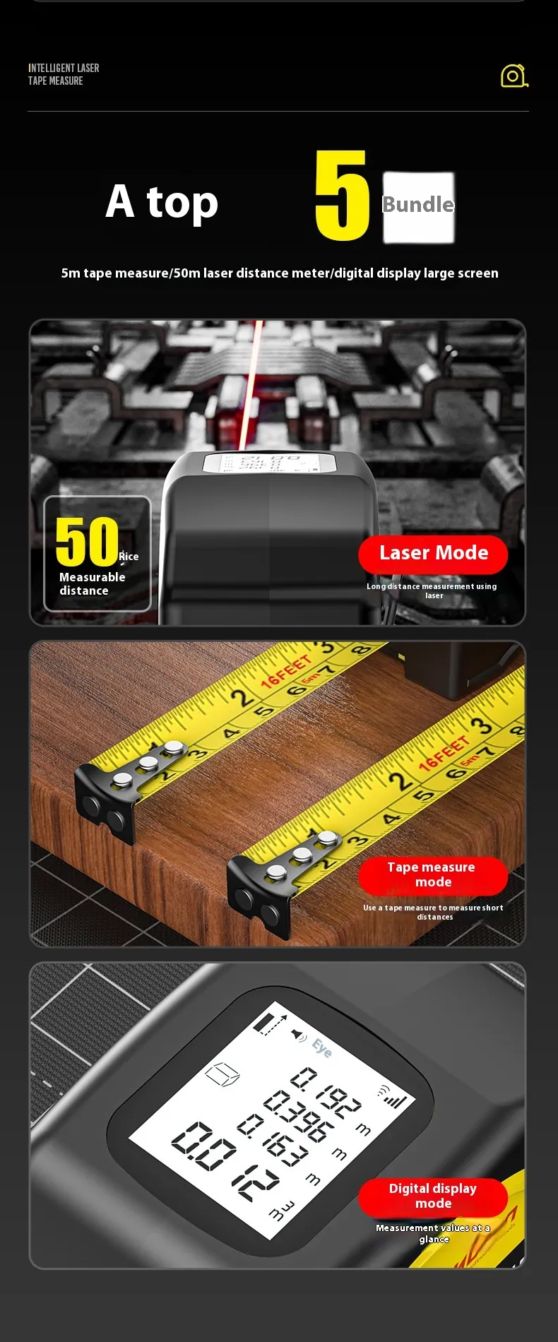 Dual Functionality: Combines the features of a traditional tape measure with advanced laser measurement technology, making