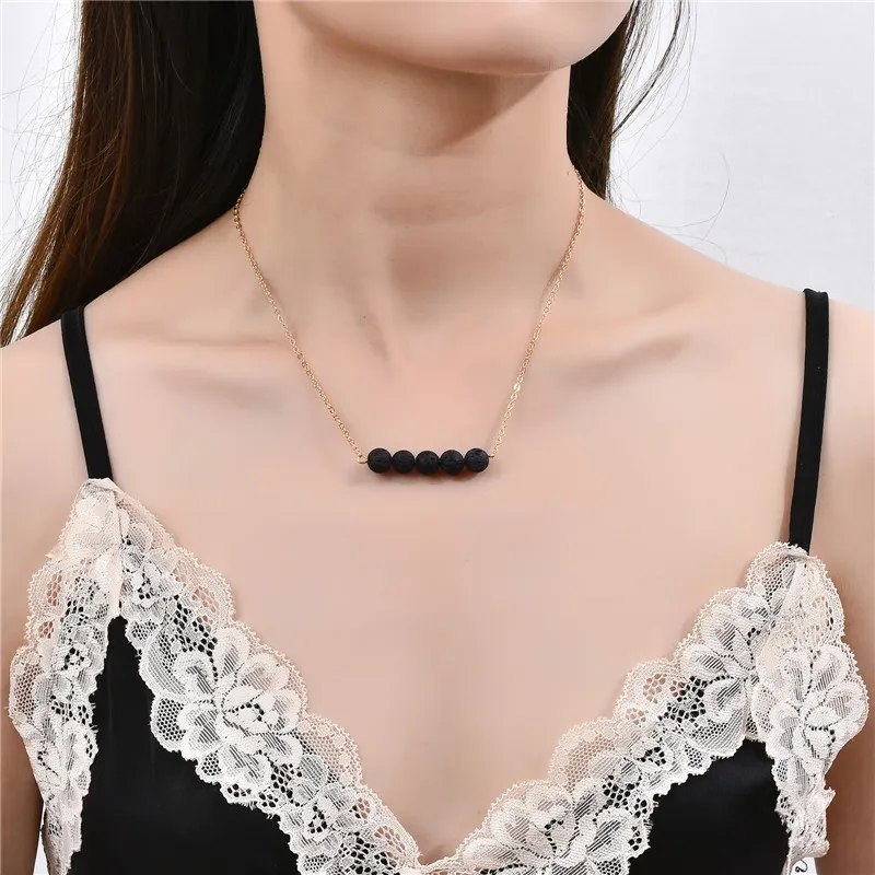 Lava Beads Volcanic Stone Pendant Necklace