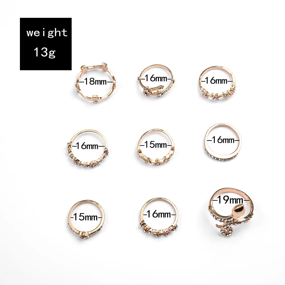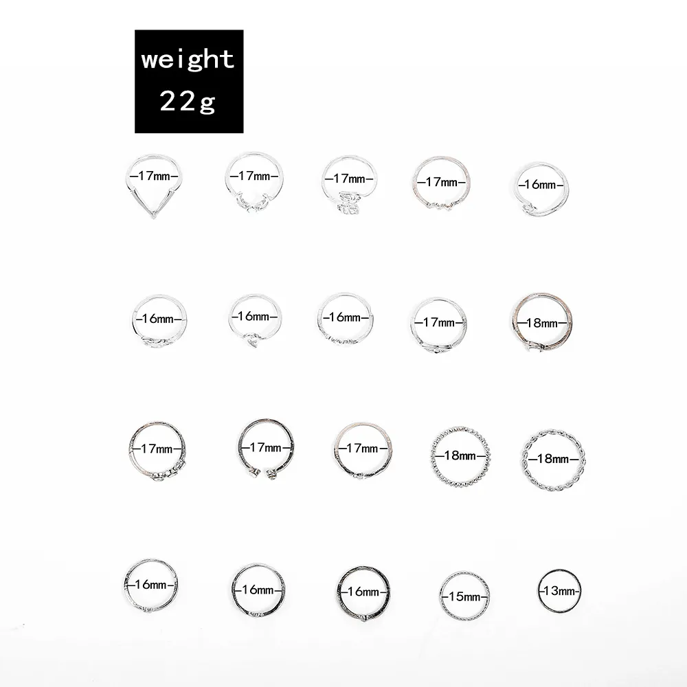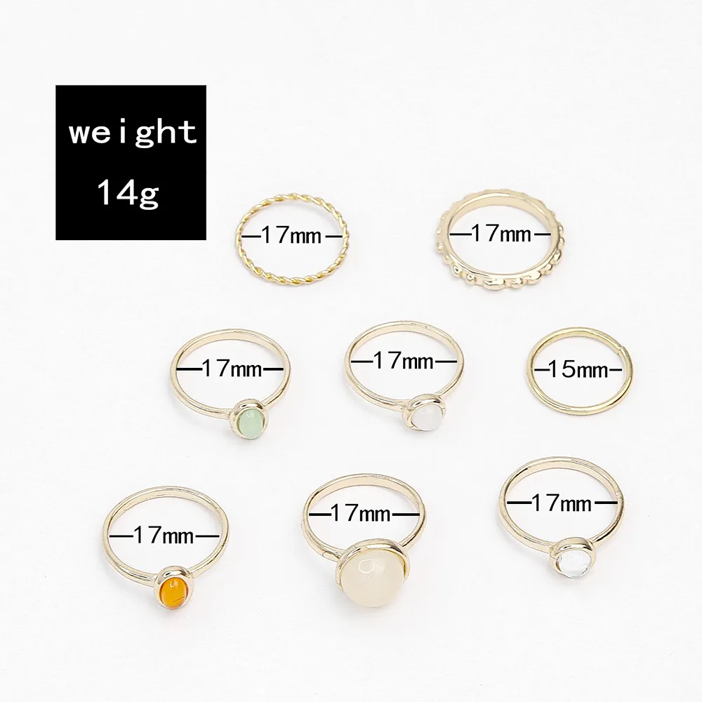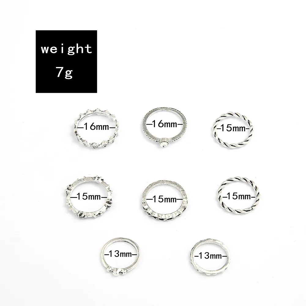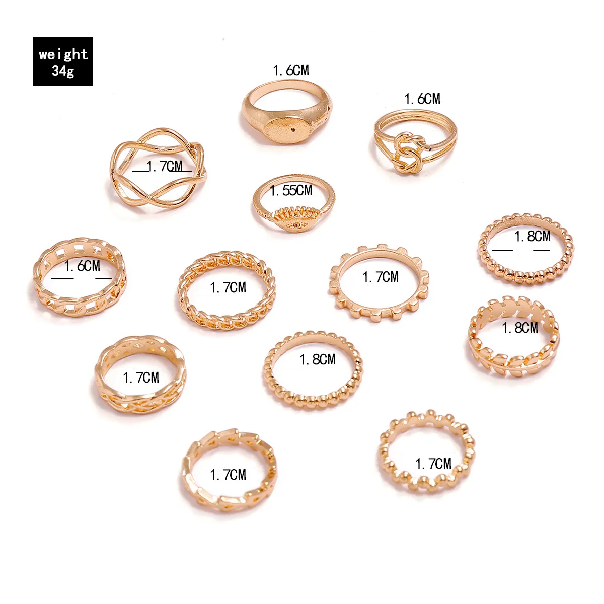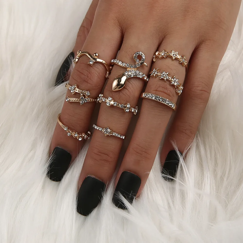 for a more minimalistic style. Each ring in the set features a unique design element, allowing for endless combination options.