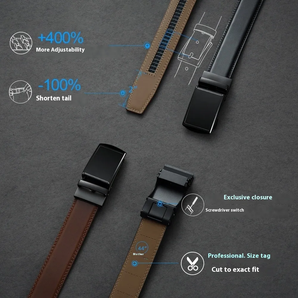 The Leather Ratchet Belt with Adjustable Buckle stands out from traditional belt designs by delivering unparalleled comfort and fit flexibility. Its innovative ratchet system allows wearers to adjust their belt to exact preferences — no missing holes or awkward fit gaps. This intelligent design accommodates minor waist changes throughout the day or over time, making it one of the most comfortable and adaptable belt systems available.