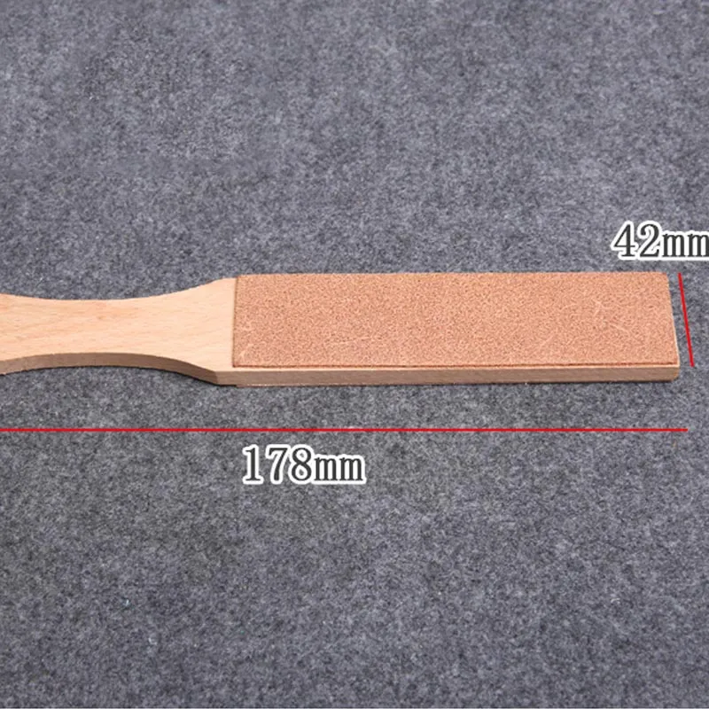sharpness. With wooden handle, easy to use. The leather polish sharpening strop one side is smooth stropping surface, another is rough
