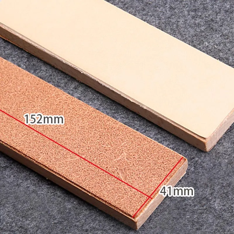 The leather polish sharpening strop one side is smooth stropping surface, another is rough surface. Both sides can be used.