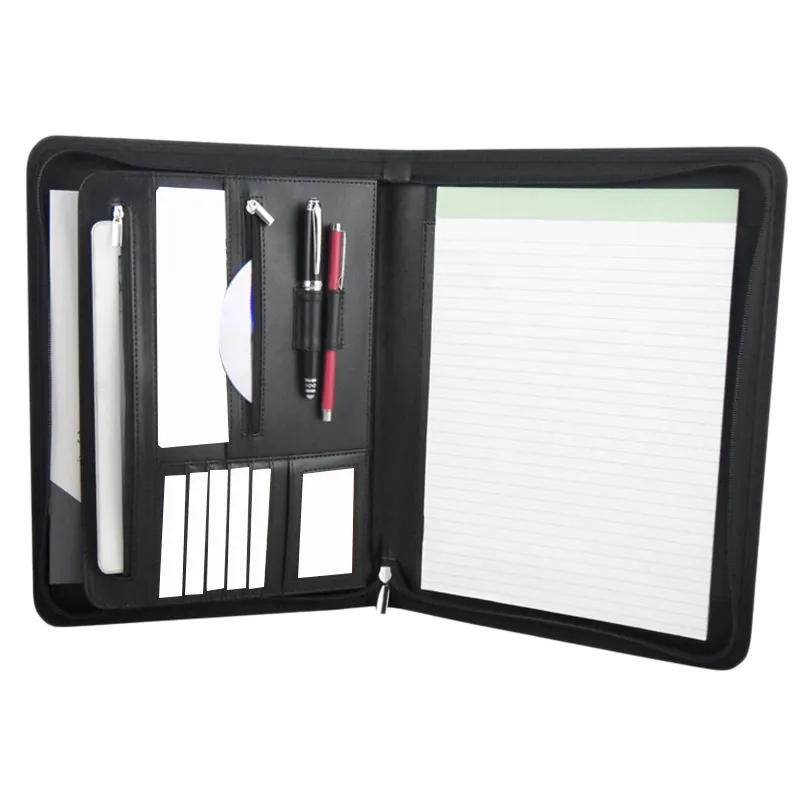 - Multiple Compartments: Storage for documents, notepads, pens, business cards, and chargers.