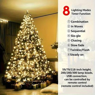 This LED Christmas Light Set features 8 lighting modes that let you choose the perfect holiday glow—from steady warm light to flashing, fading, twinkling, or wave effects. The lights are USB-powered, making them easy to use with power banks, USB plugs, laptops, or USB wall sockets. This gives you flexibility for decorating indoors or outdoors without needing a traditional power outlet.