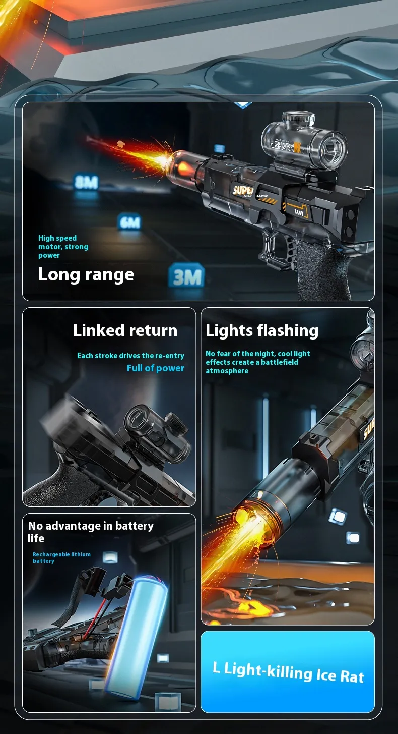 In a world where many toys compete with screens for attention, the LED Electric Water Gun stands out as a dynamic, physical, and social activity that encourages players to run, aim, strategize, and interact face-to-face. It is designed to elevate water play from a simple pastime into a memorable summer experience.