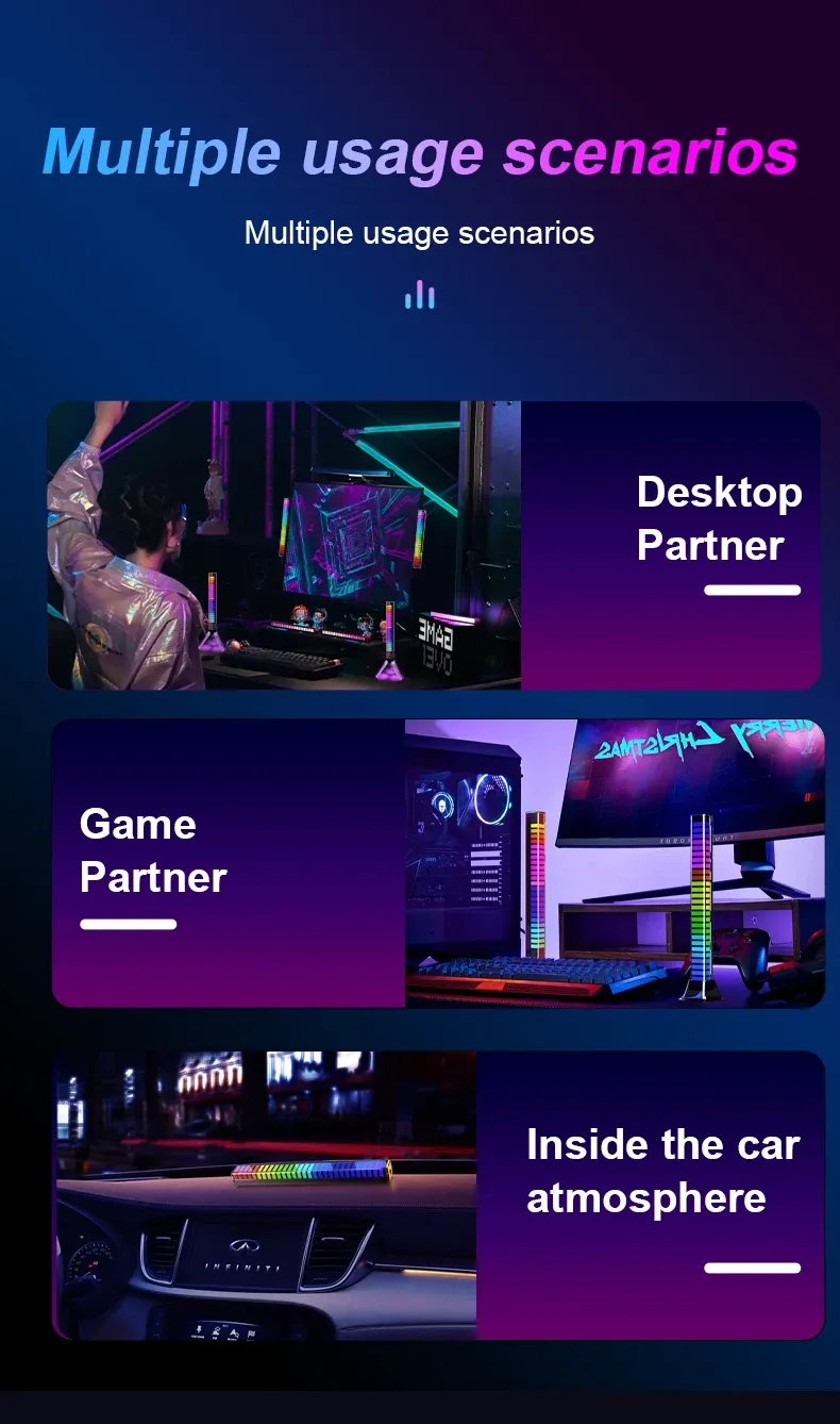 • Dimmable RGB Flow Light Bars :The dimmable RGB flow light bars allow you to create a seamless transition between different moods, making it ideal for parties, gatherings, or relaxation.