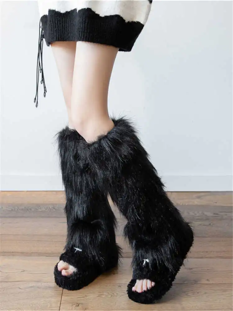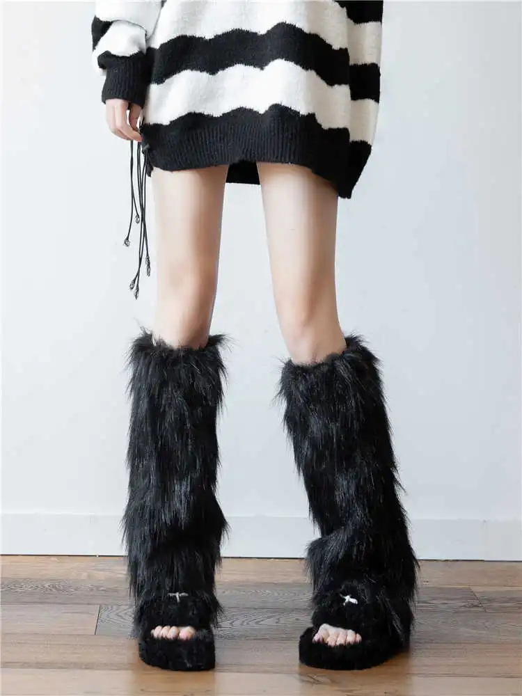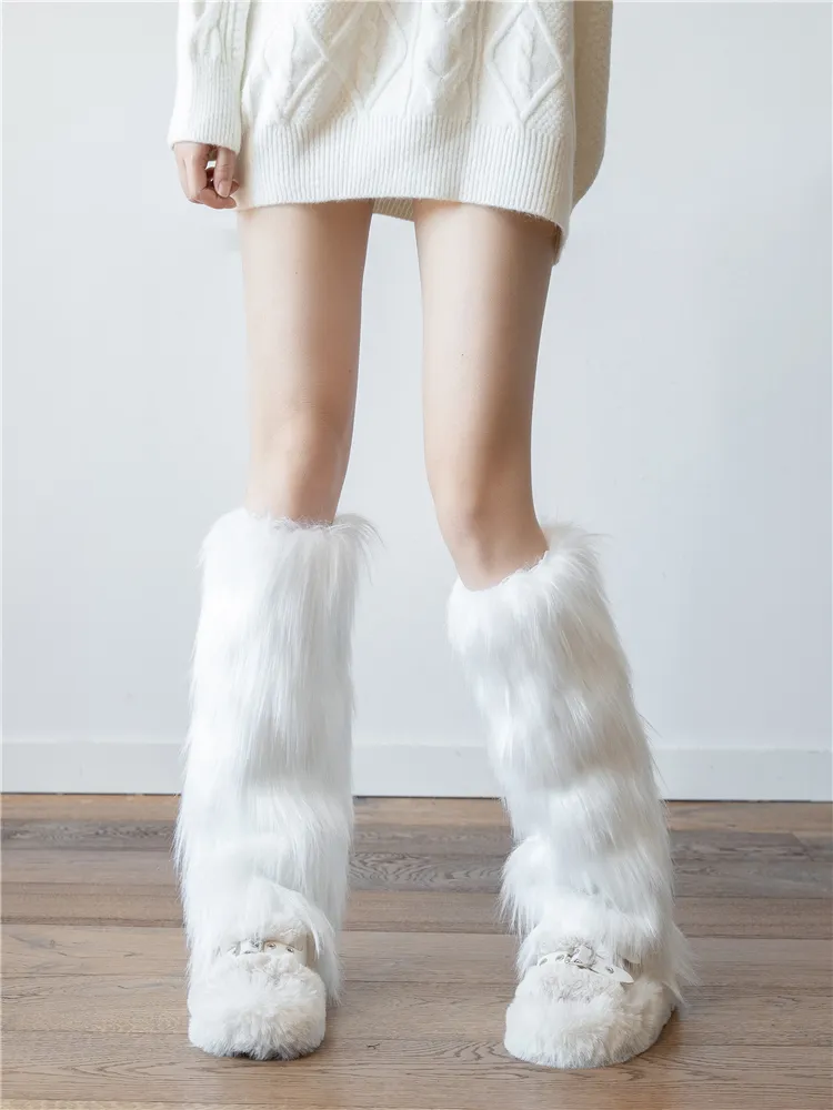 Color classification: imitation fur leg warmer White, imitation fur leg warmer Black