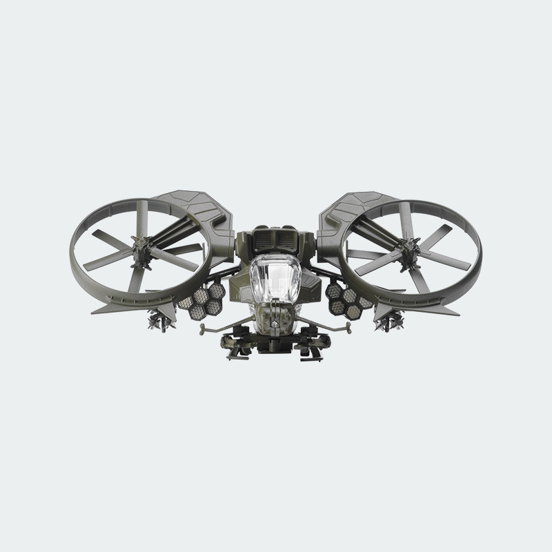 reduction. The main body of the fuselage is made of zinc alloy, the missiles on both sides can be pressed and launched, and the rotor