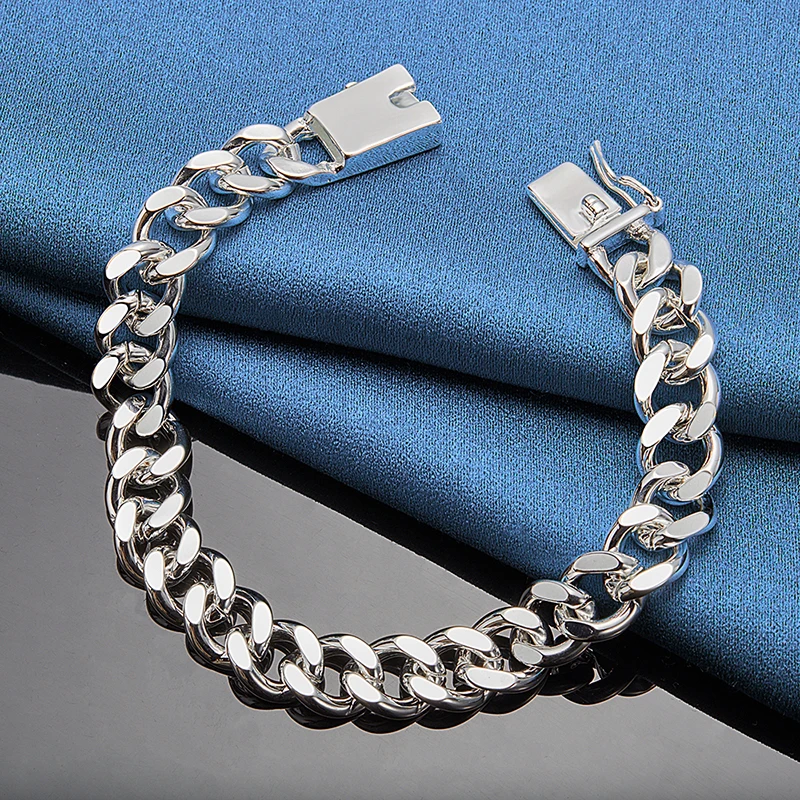 ALIZERO 925 Sterling Silver 10MM Chain Necklace Bracelet Set for Man Woman Luxury Wedding Engagement Party Jewelry