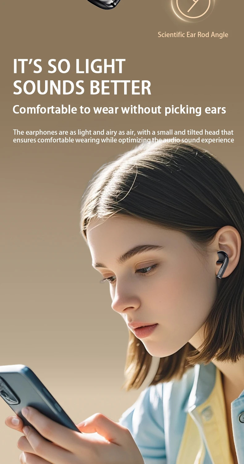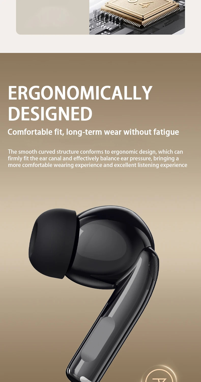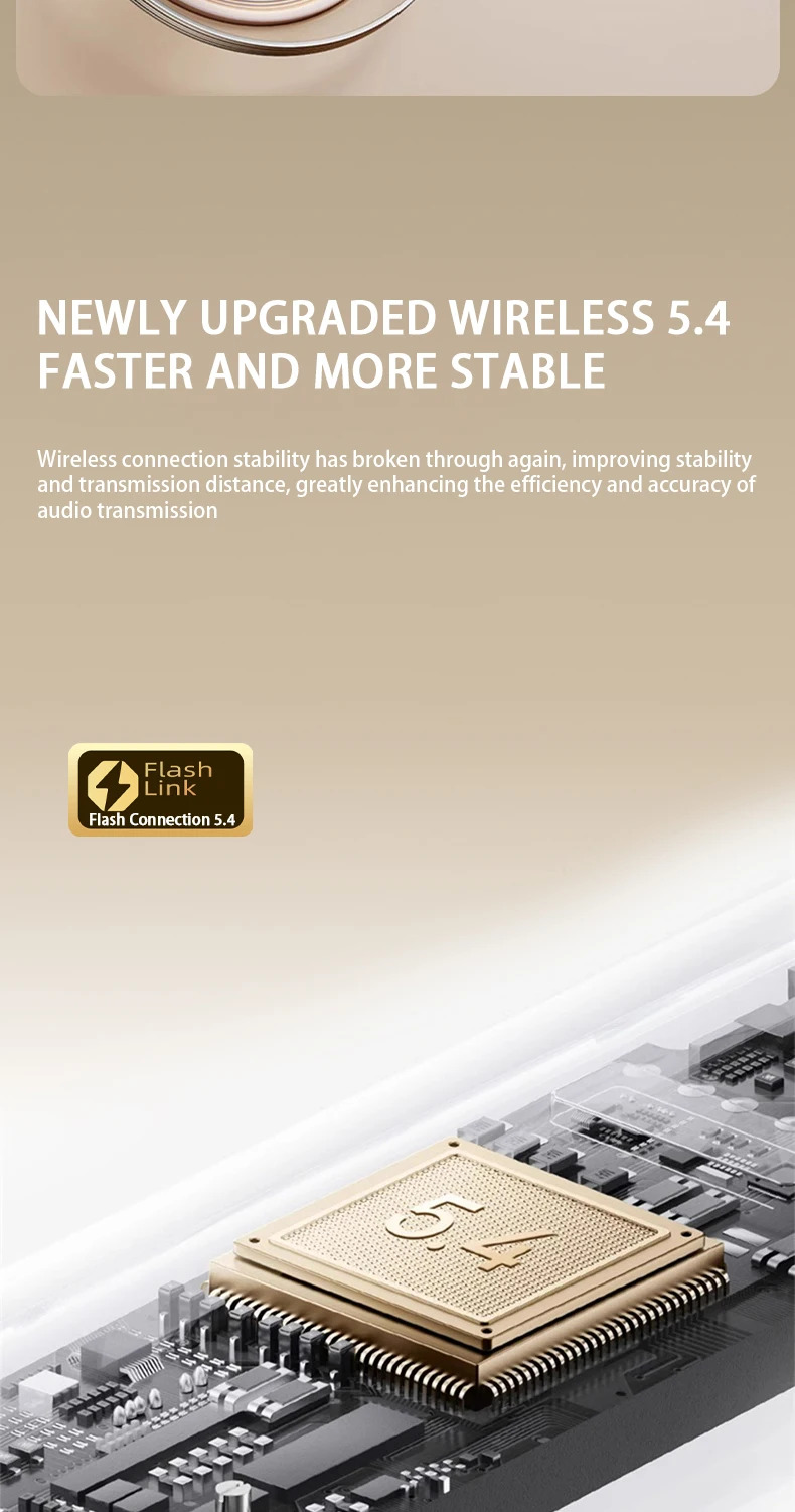 These wireless earphones are engineered with advanced Bluetooth 5.4, providing improved signal stability, quick pairing, low latency, and energy-efficient performance. The ergonomic in-ear design sits comfortably and securely, reducing ear fatigue during long listening sessions.