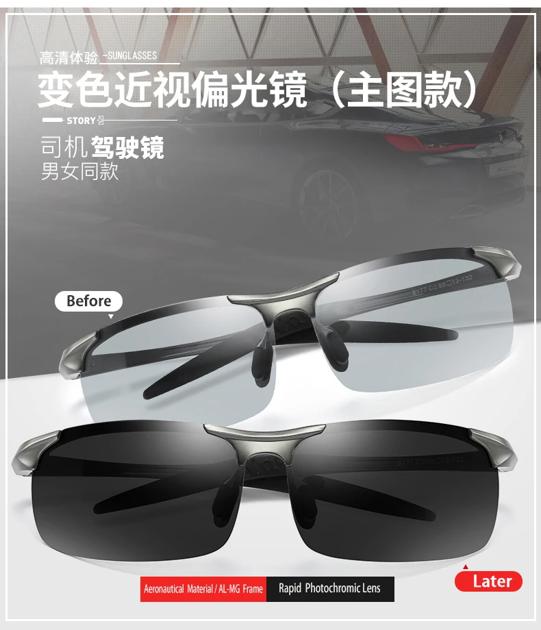 Lenses Color: Blue, Frame Color: PURPLE - Myopia Photochromic Sunglasses Diopter Polarized Driving Goggle Men Chameleon Change Color transition Prescription Sun Glasses