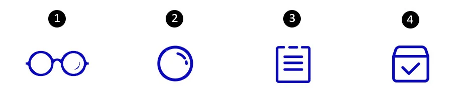 1. Selection Frame | 2. Selection Lens | 3. Provide data | 4. Confirm order |
