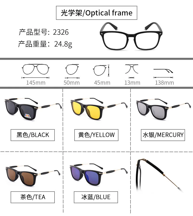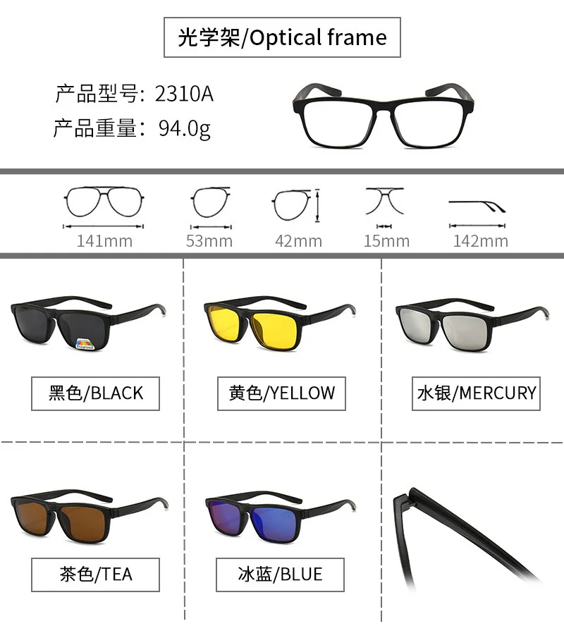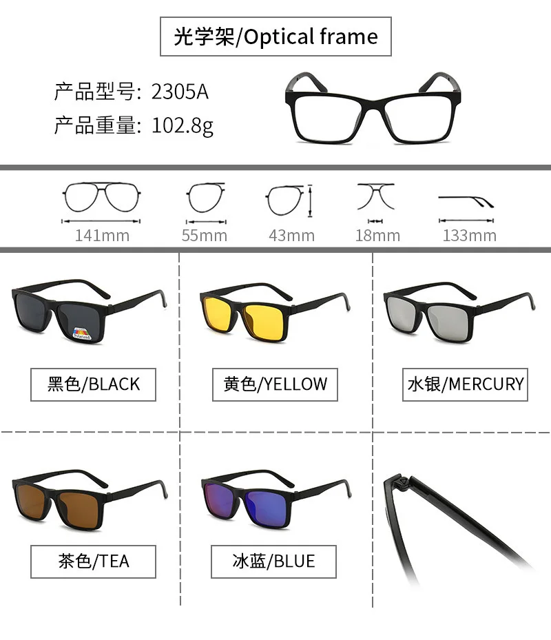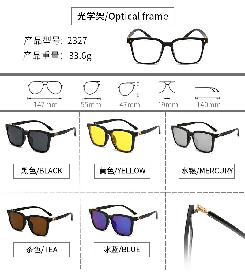 Lenses Color: Ginger, Ships From: CHINA, Frame Color: WHITE - 6 In 1 Magnetic Clip Sunglasses And Prescription Glasses Frame Men Women Polarized or Night Vision Lenses PC or TR90 Frame 2333